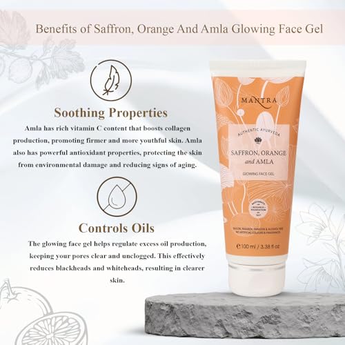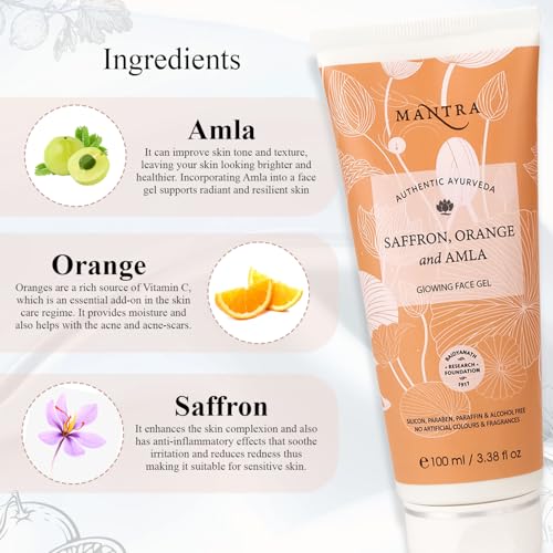 Mantra Herbal Saffron, Orange And Amla Glowing Face Gel - 100 ml | Helps to Reduce Tanning, Pigmentation, Spots and Marks on Face