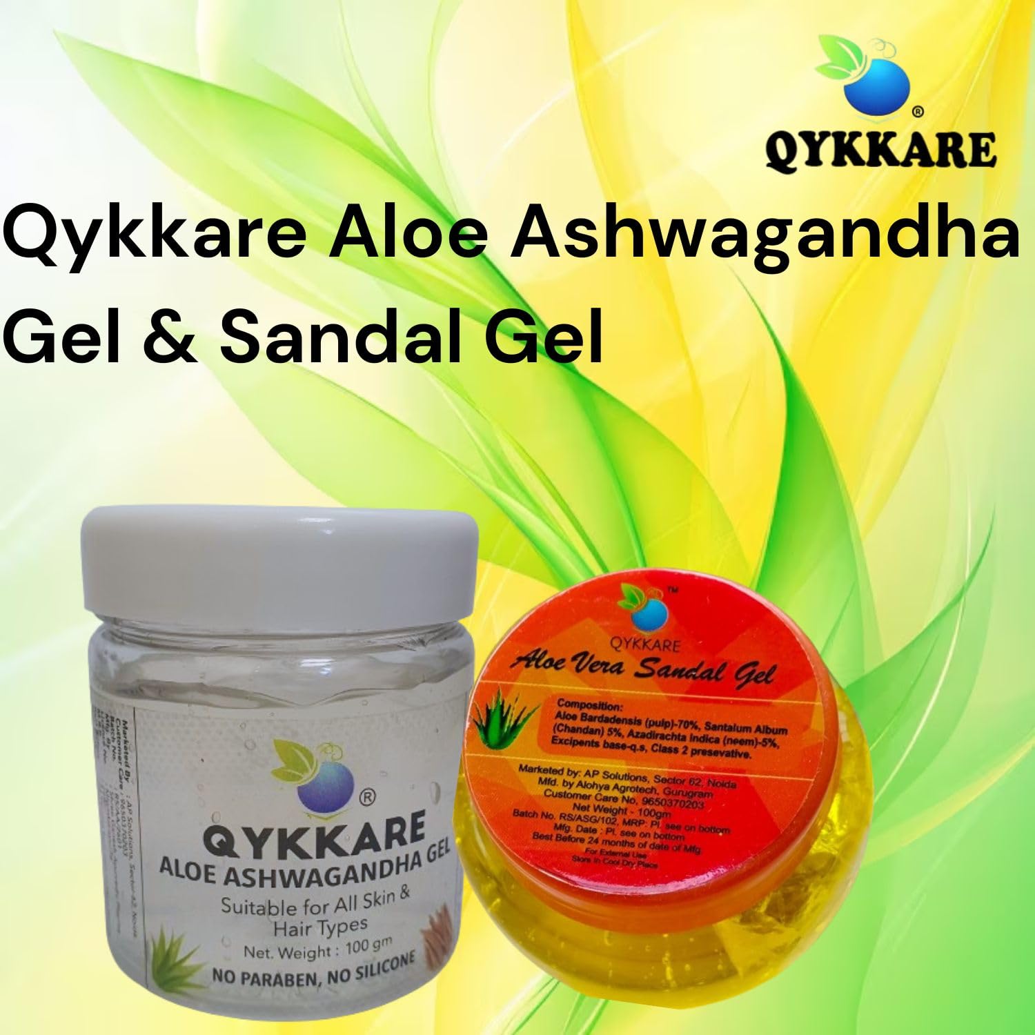 Qykkare Aloevera Sandal Gel and Aloe Ashwagandha Gel combo (100gm x 2) for radiant youthful skin