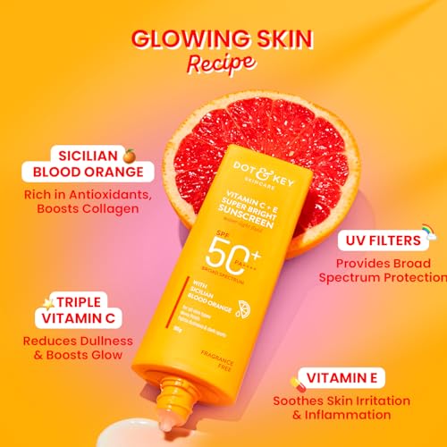 Dot & Key Vitamin C Daily Glow Essentials Skin Care Combo (Vitamin C Sunscreen SPF 50 PA+++ 50gm & Vitamin C Moisturizer 60gm) | For Glowing Skin | For Women & Men