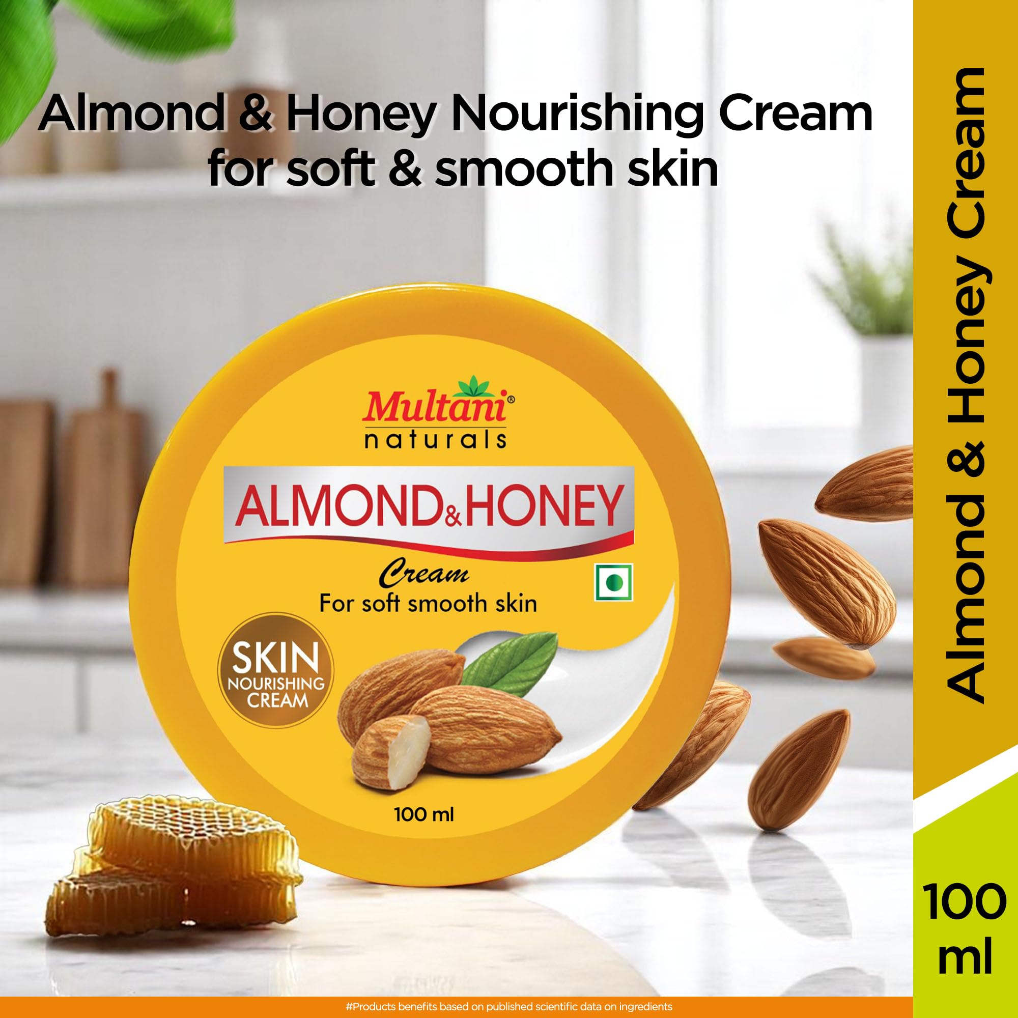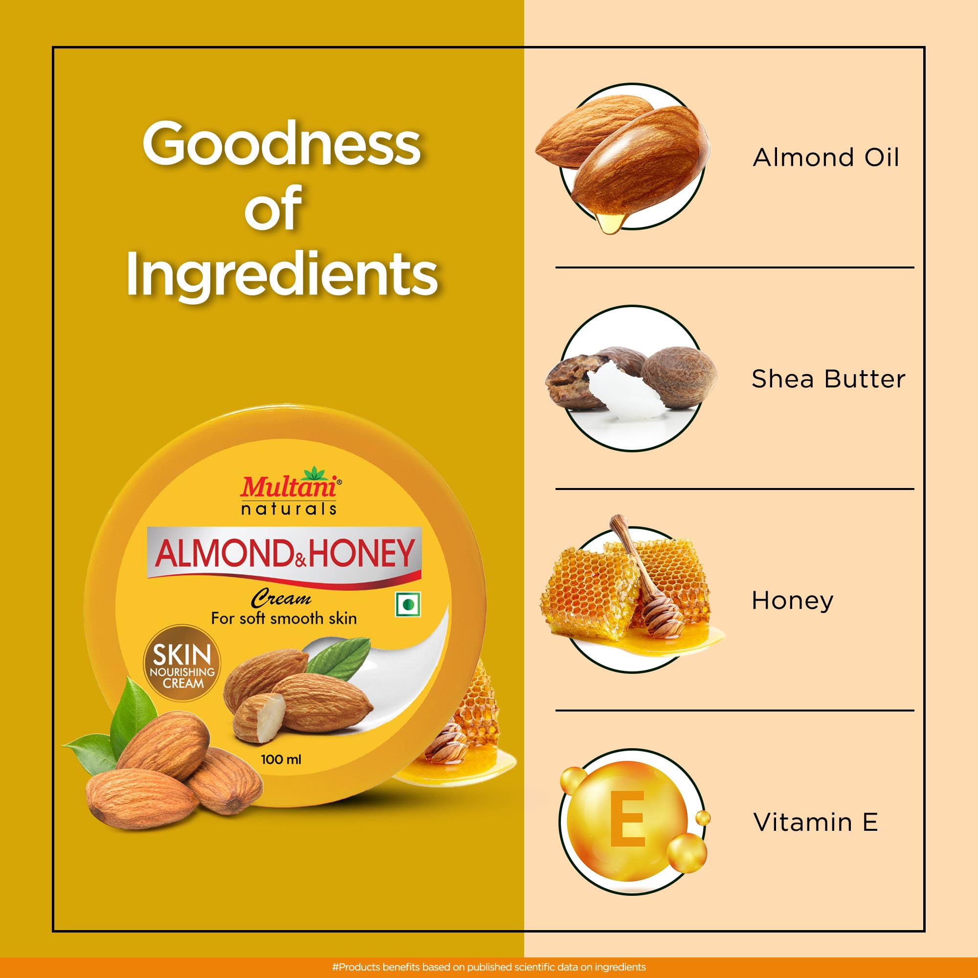 Multani Naturals Almond & Honey Cream | Deep Nourishing Hands & Body | Skin Cream with Natural Sunscreen For Glowing Skin | Protects for Dryness & Retains Natural Moisture 100 Ml