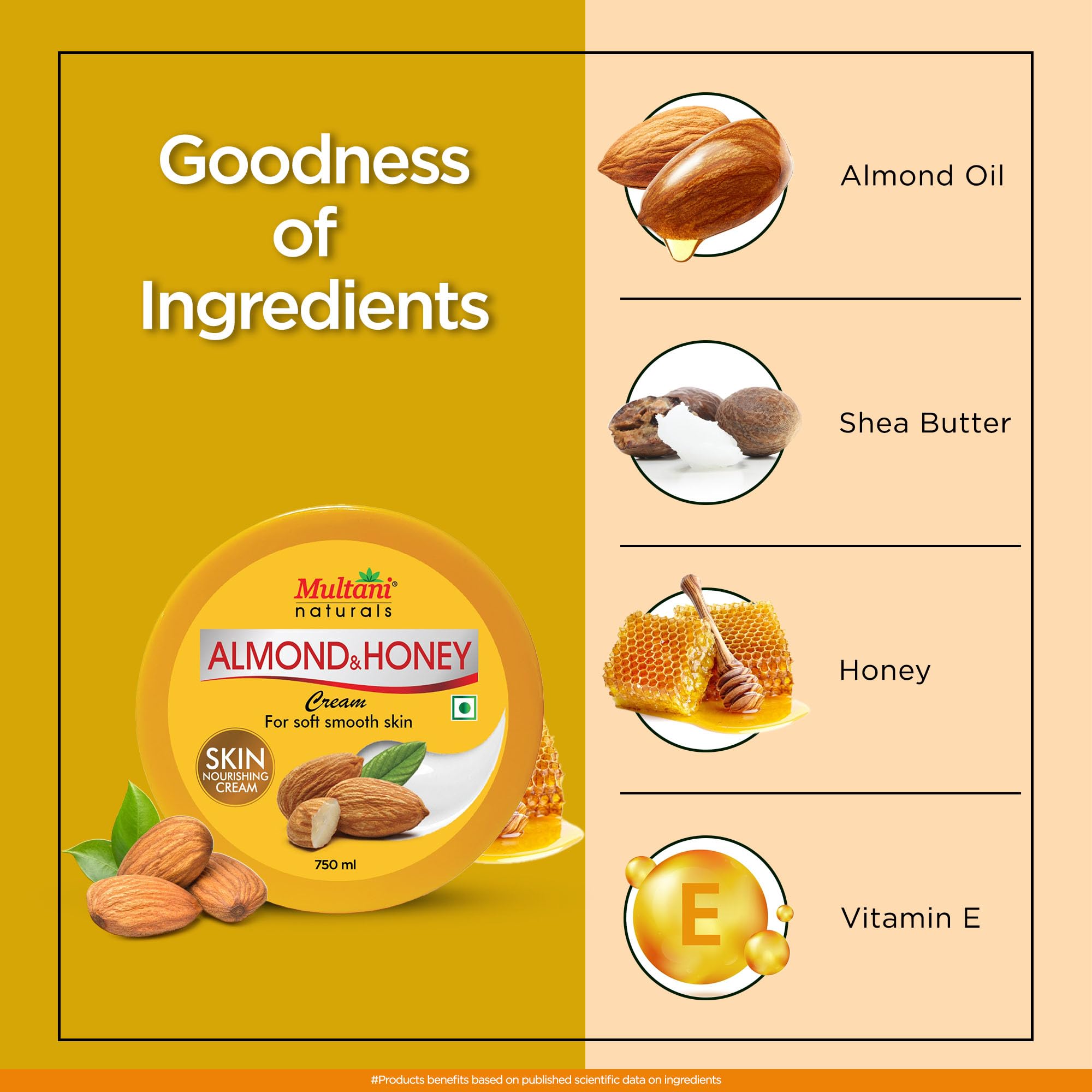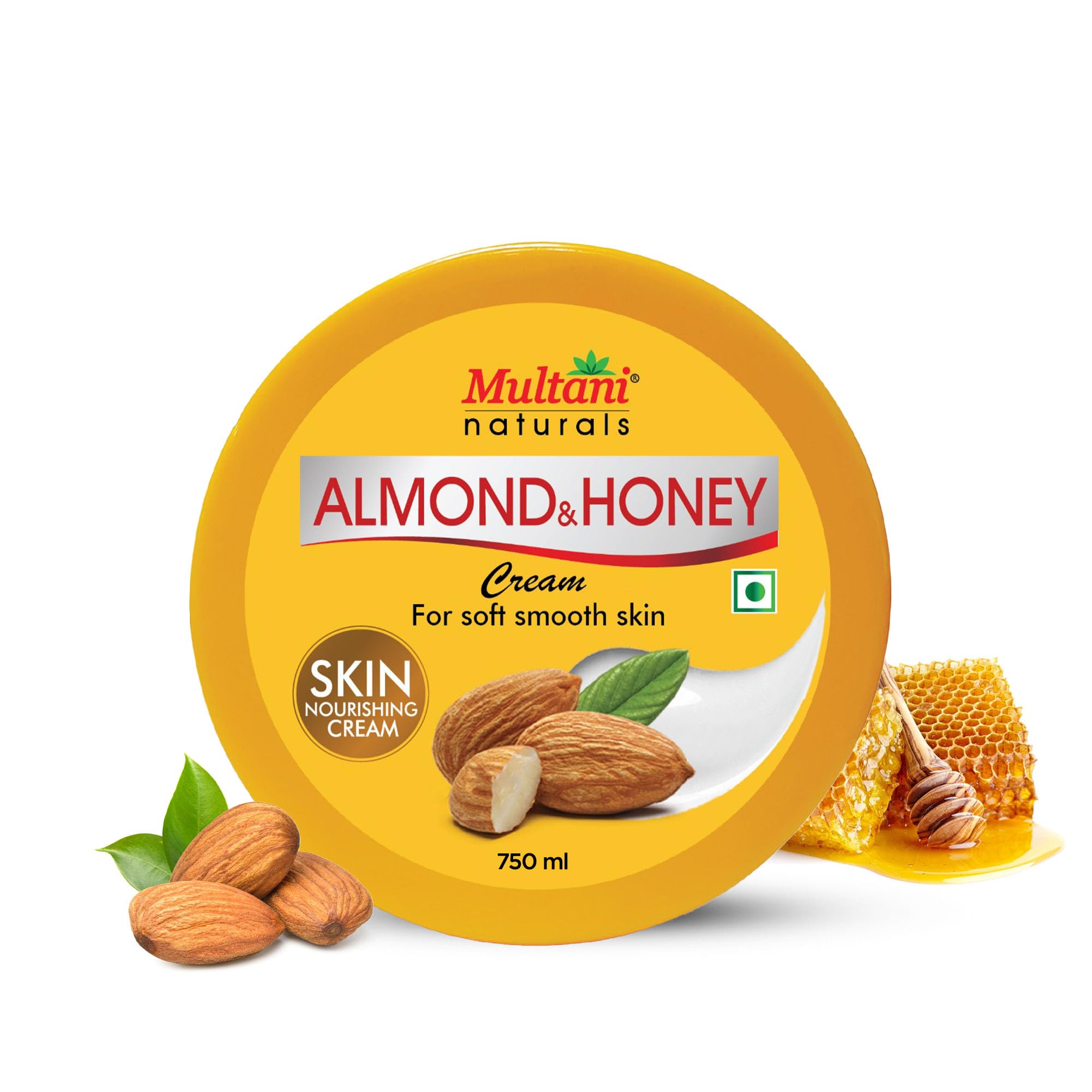 Multani Naturals Almond & Honey Cream | Deep Nourishing Hands & Body | Skin Cream with Natural Sunscreen For Glowing Skin | Protects for Dryness & Retains Natural Moisture 750 Ml