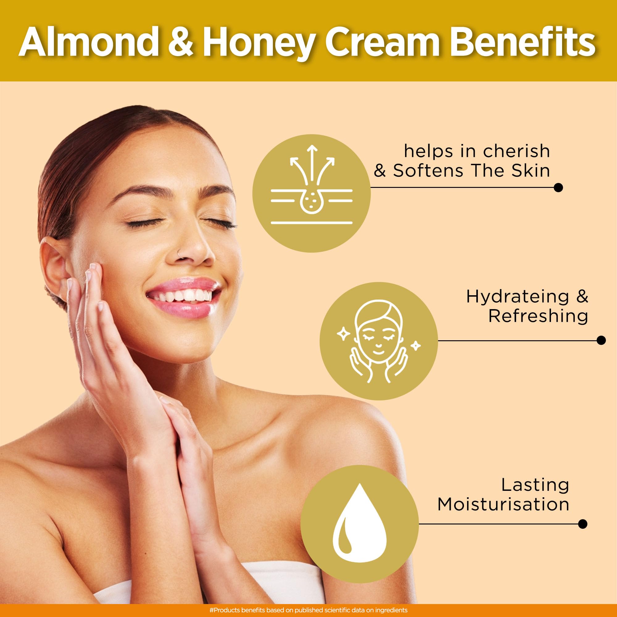 Deeply Nourishing & Long-Lasting Hydration: Enriched with Almond Oil and Honey this Moisturiser Cream deeply nourishes and hydrates your skin leaving it feeling soft supple and smooth throughout the day.