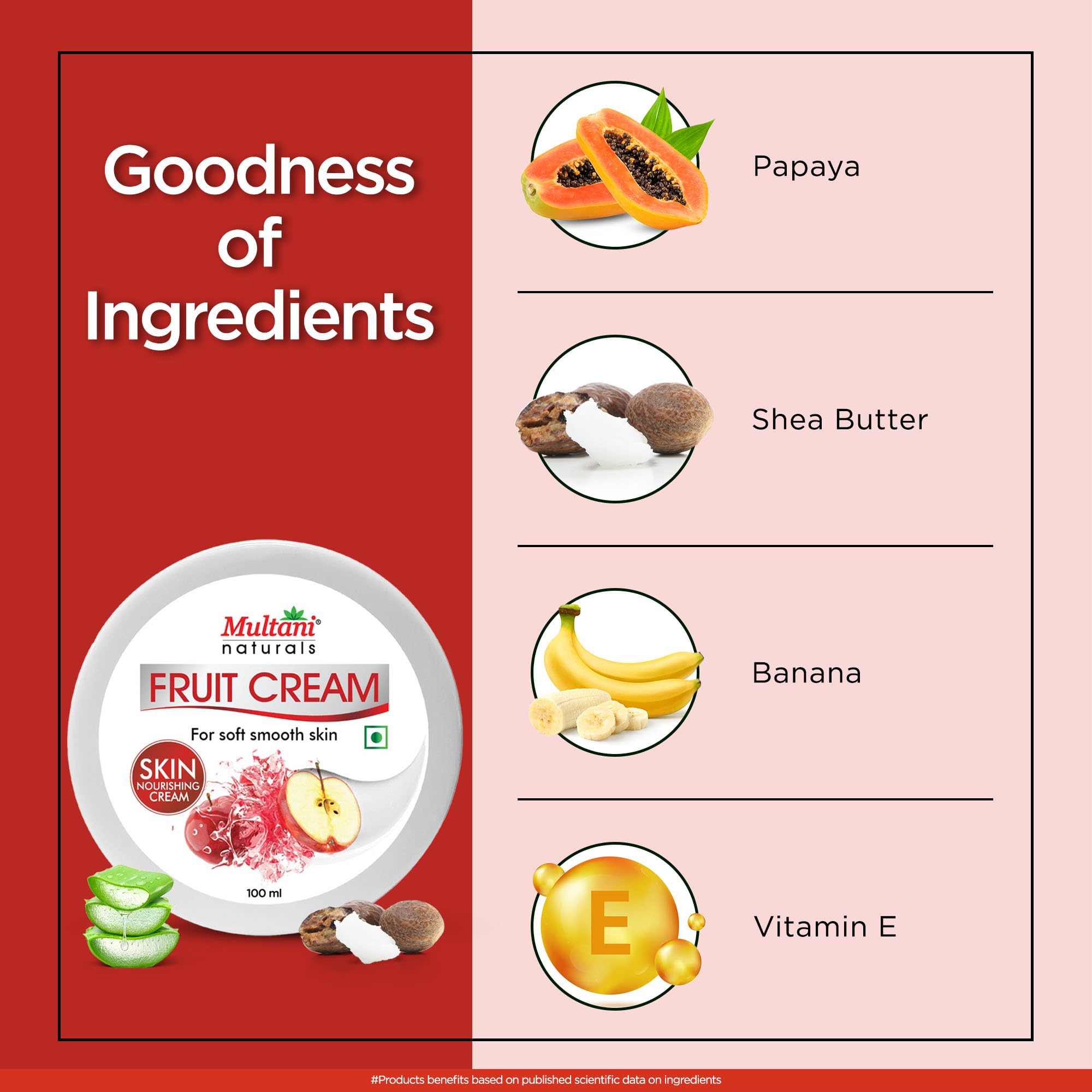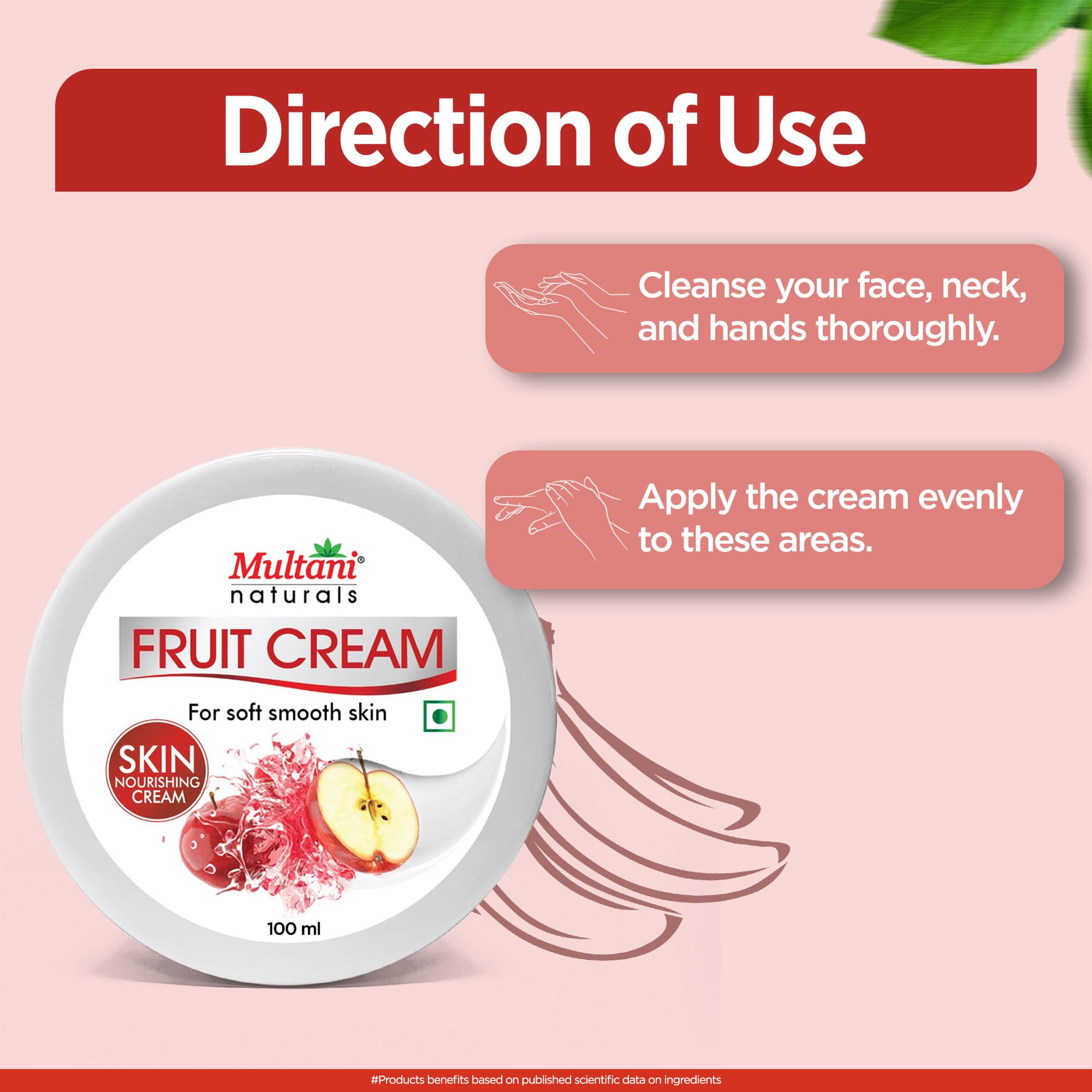 Multani Naturals Fruit Cream Moisturizing Skin Cream With Apple Quick Absorbing & Non Sticky Moisturizer for Face Hands & Body | For Healthy Soft & Glowing Skin | 100 Ml