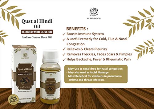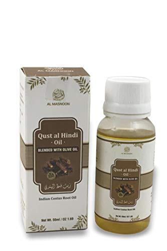 Al Masnoon Qust Al Hindi Oil 100% Natural Costus Root Oil Infused with Olive Oil 50ml (pack of 1)