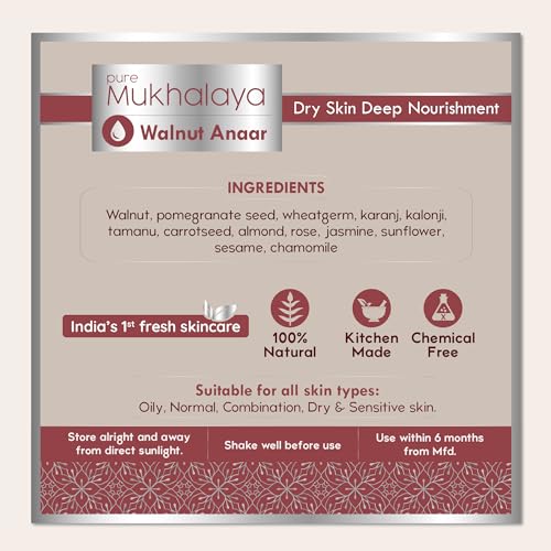 • Included Components - It's crafted for dry & dull skin providing deep nourishment with walnut anaar wheatgerm karanj kalonji tamanu carrot seed almond chamomile & multiple more oils.