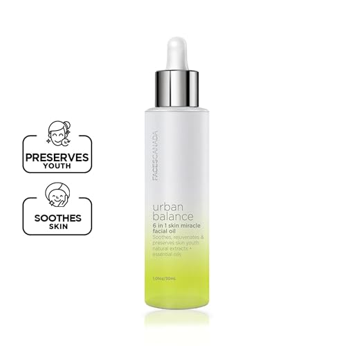 Formulated in Canada 'faces urban balance 6 in 1 skin miracle facial oil is a magical blend of handpicked essential oils like moringa sunflower seed sweet almond jojoba seed grape seed and hemp seed oils. This makes it the perfect comfort blanket for your skin- it soothes and hydrates your skin taking all signs of ageing away with it. It gives your skin the kick start that it needs when it is stressed and fatigued restoring a natural glow. When it is done it also doubles up as the perfect primer for make-up.