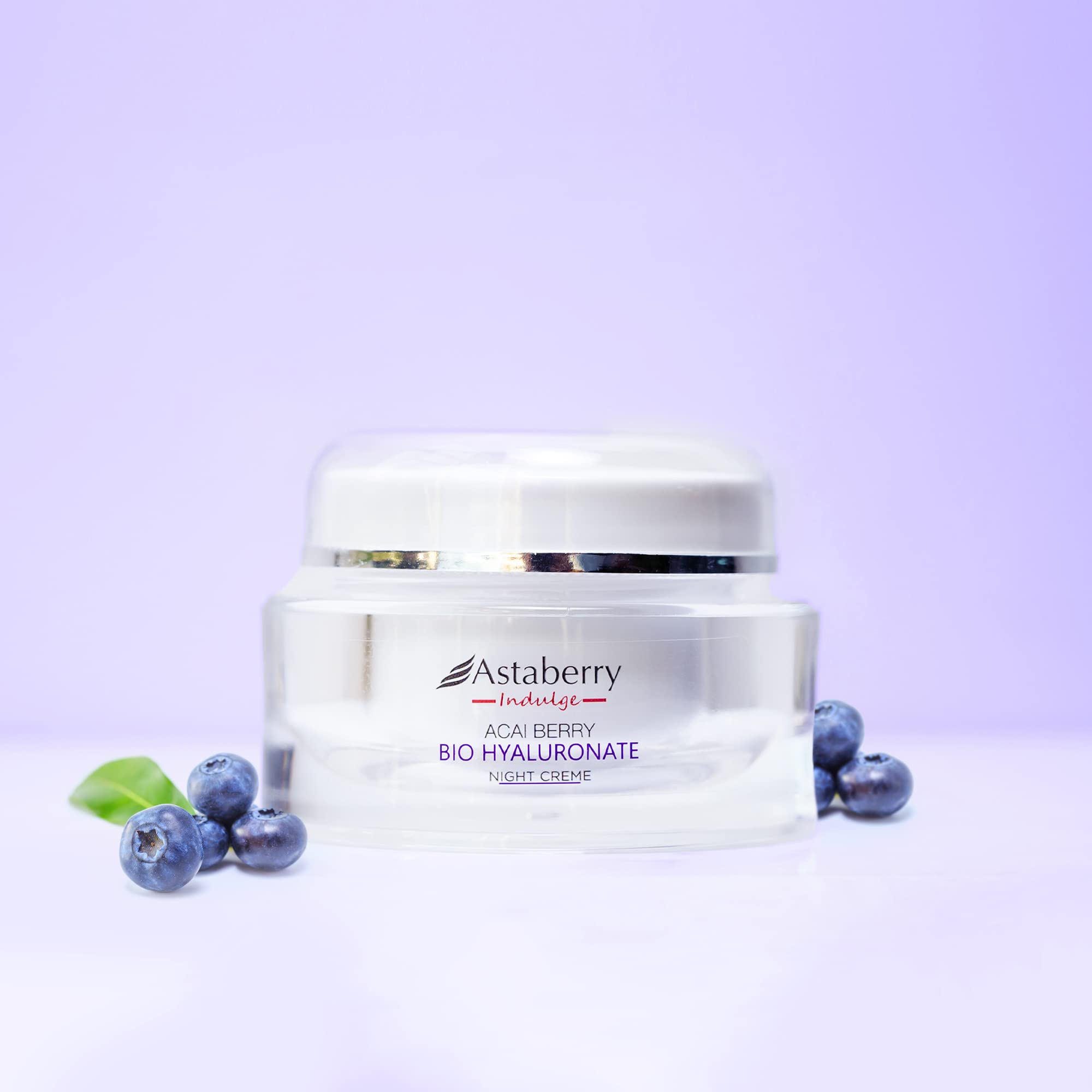 HomeBeautyFace CareMoisturizersNight CreamASTABERRY Indulge Acai Berry Bio Hyaluronate Night Cream For Face | Bakuchiol & Ginseng Extract | Reduces Fine Lines & Wrinkles | Suitable For All Skin Types 50G