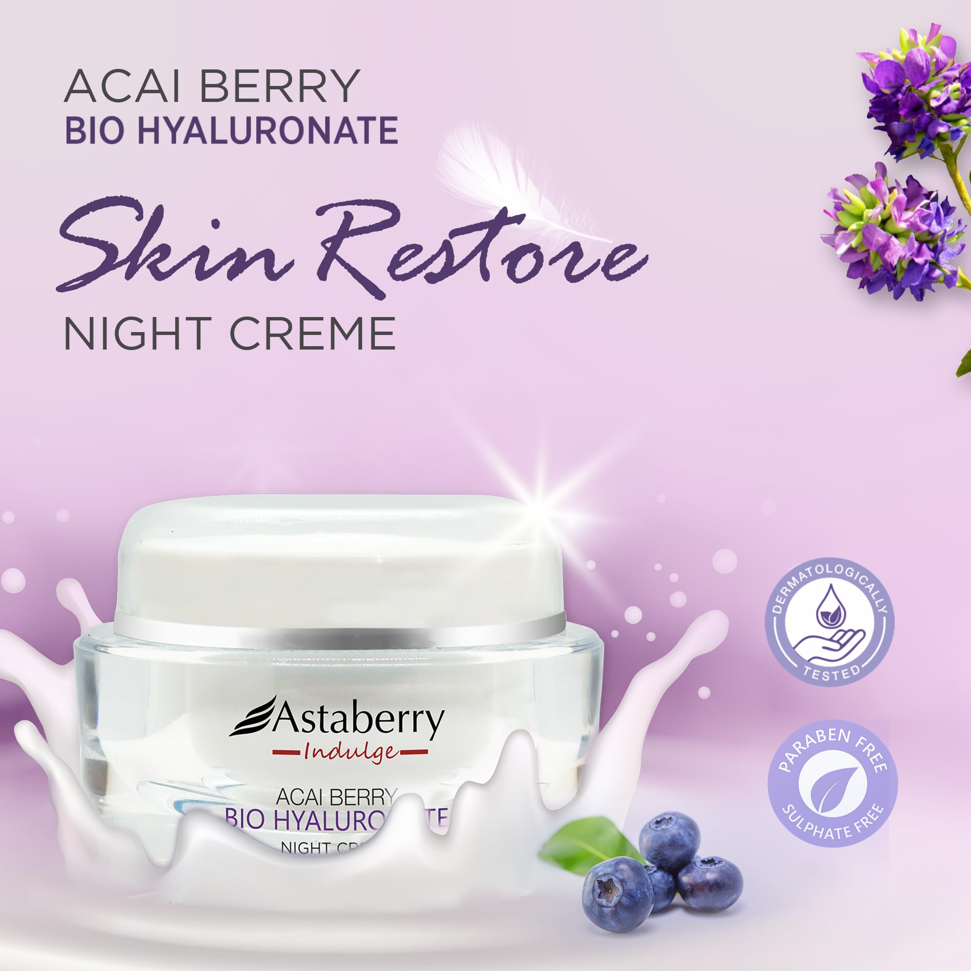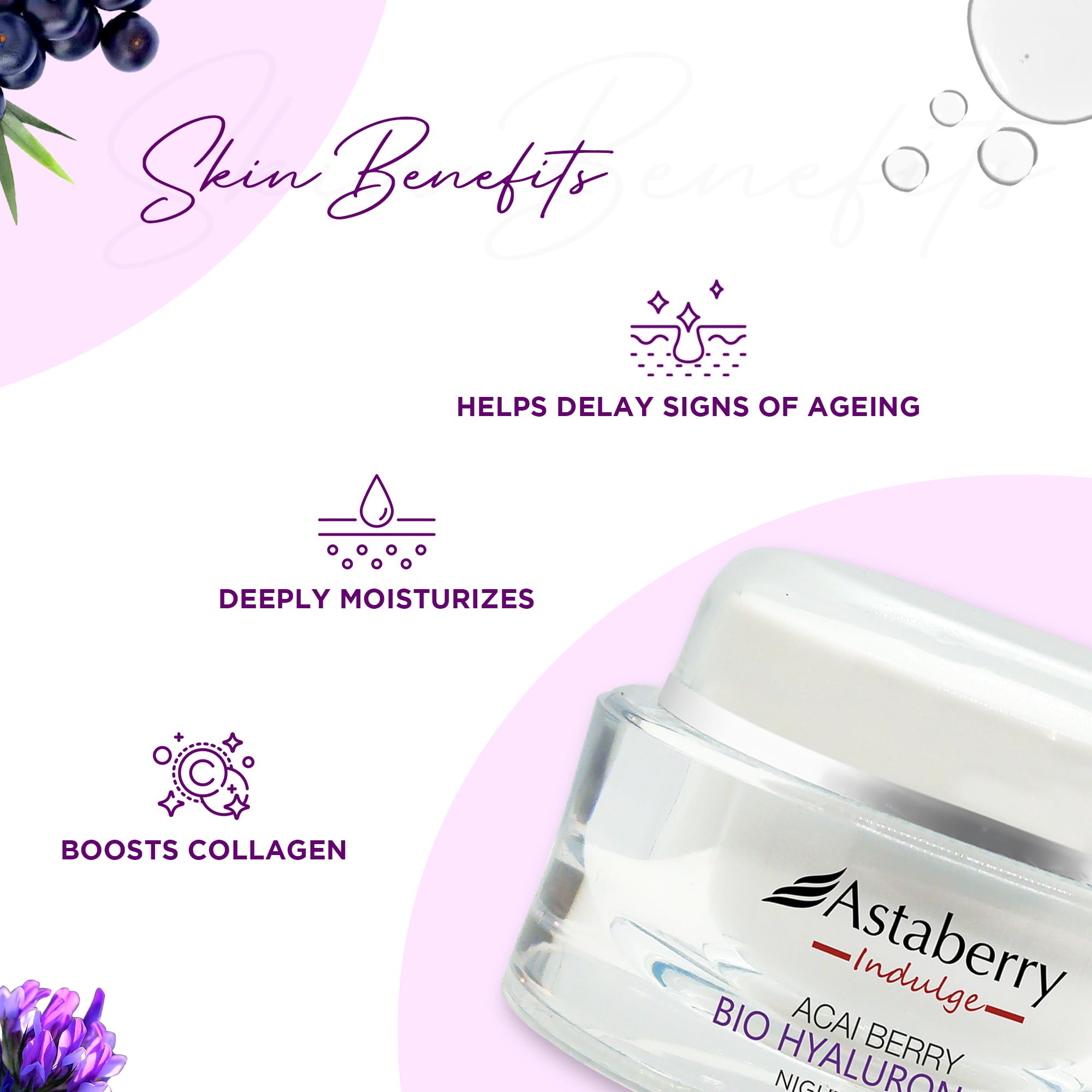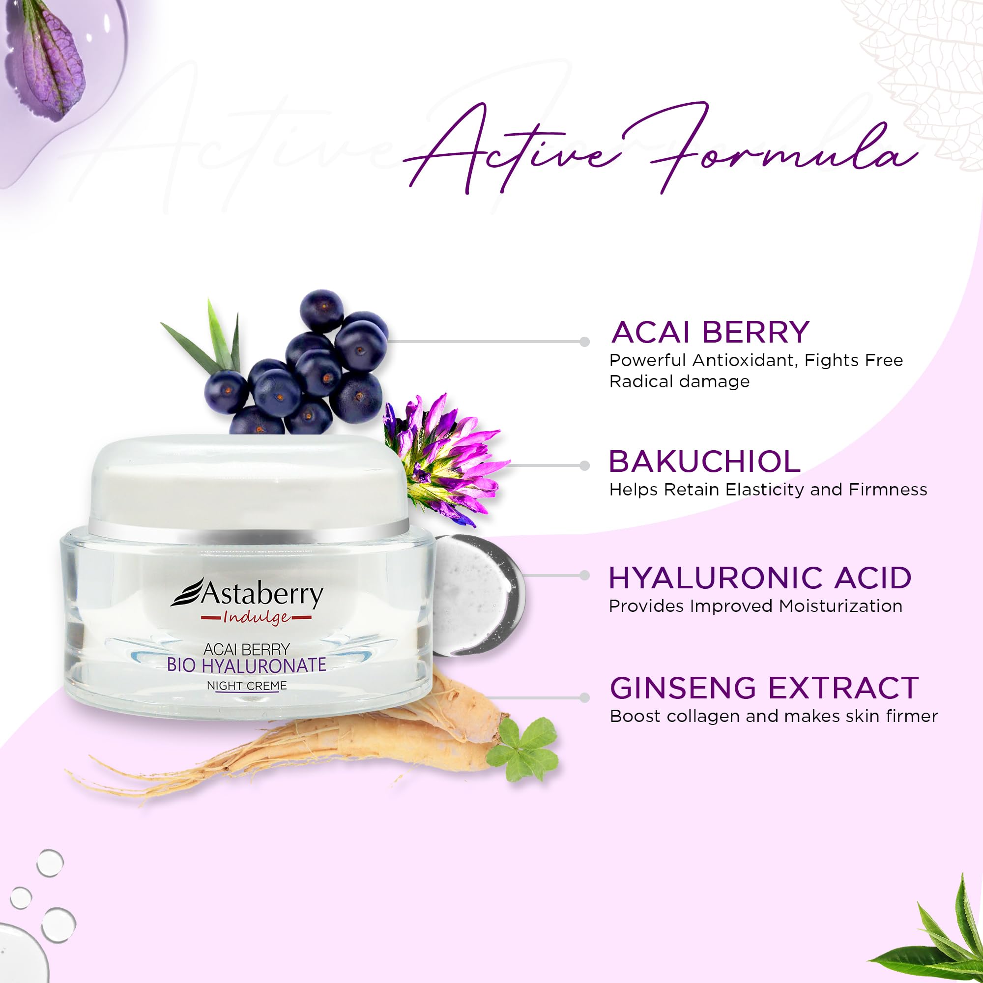 ASTABERRY Indulge Acai Berry Bio Hyaluronate Night Cream For Face | Bakuchiol & Ginseng Extract | Reduces Fine Lines & Wrinkles | Suitable For All Skin Types 50G