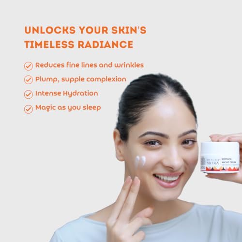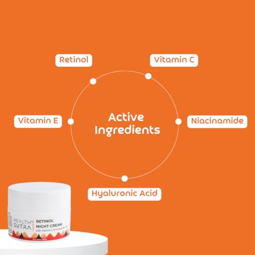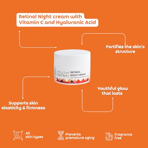 Health Sutra Retinol Night Cream Anti-Aging Fine Line & Wrinkle Reduction Vitamin C & Hyaluronic Acid for Youthful Glow Deep Hydration Fragrance-Free - 50g