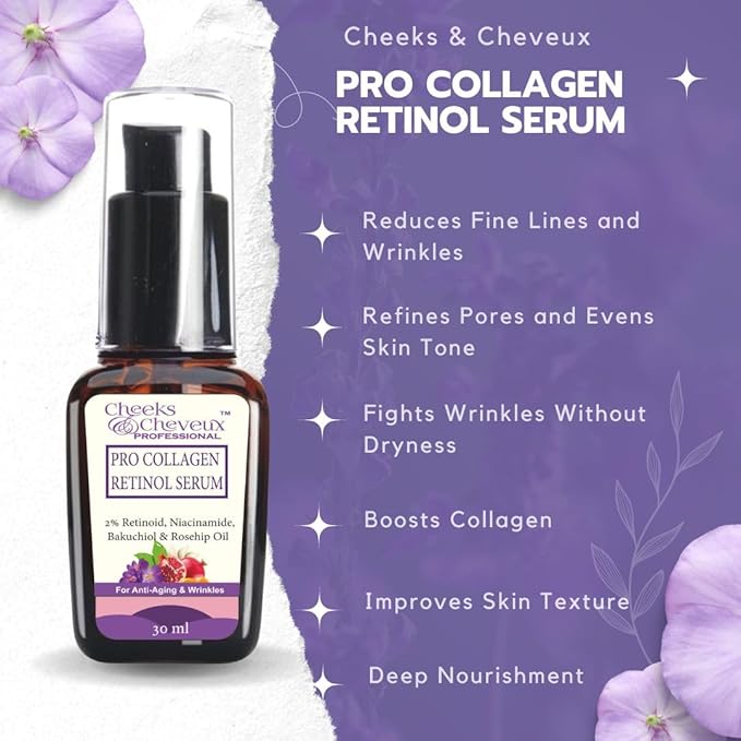 Cheeks & Cheveux Anti-Aging & Wrinkles Serum with 2% Retinoid, Niacinamide, Bakuchiol & Rosehip Oil | Fine Lines & Wrinkles Reduction Serum for Beginners | Water-Free Formula for Stability & Nourishment | Dark Spots Correcting Glow | Suitable for All Skin Types | For Women & Men | 30ml