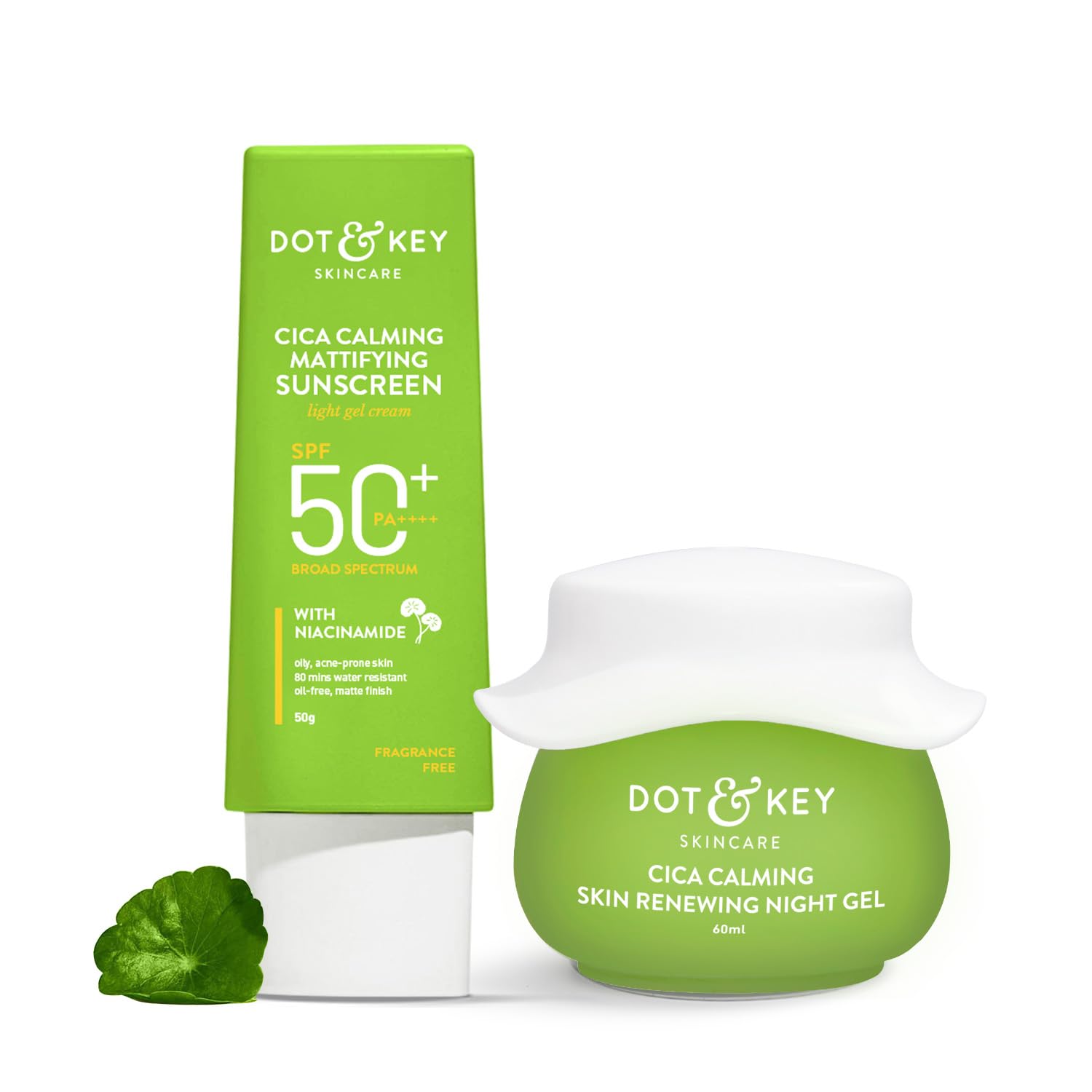 Dot & Keyâs sunscreen is made to give you a broad spectrum protection of PA ++++ with an SPF 50. It is super lightweight and quick absorbing that spreads well without leaving any white cast to give you maximum protection against all UVA UAB rays sunburns and photodamage. With added benefits of Cica & Niacinamide it also reverses the effects of sun exposure on your skin. Keep acne breakouts at bay with CICA+Niacinamide Oil-Free Moisturizer an ideal antidote for acne-prone oily & sensitive skin