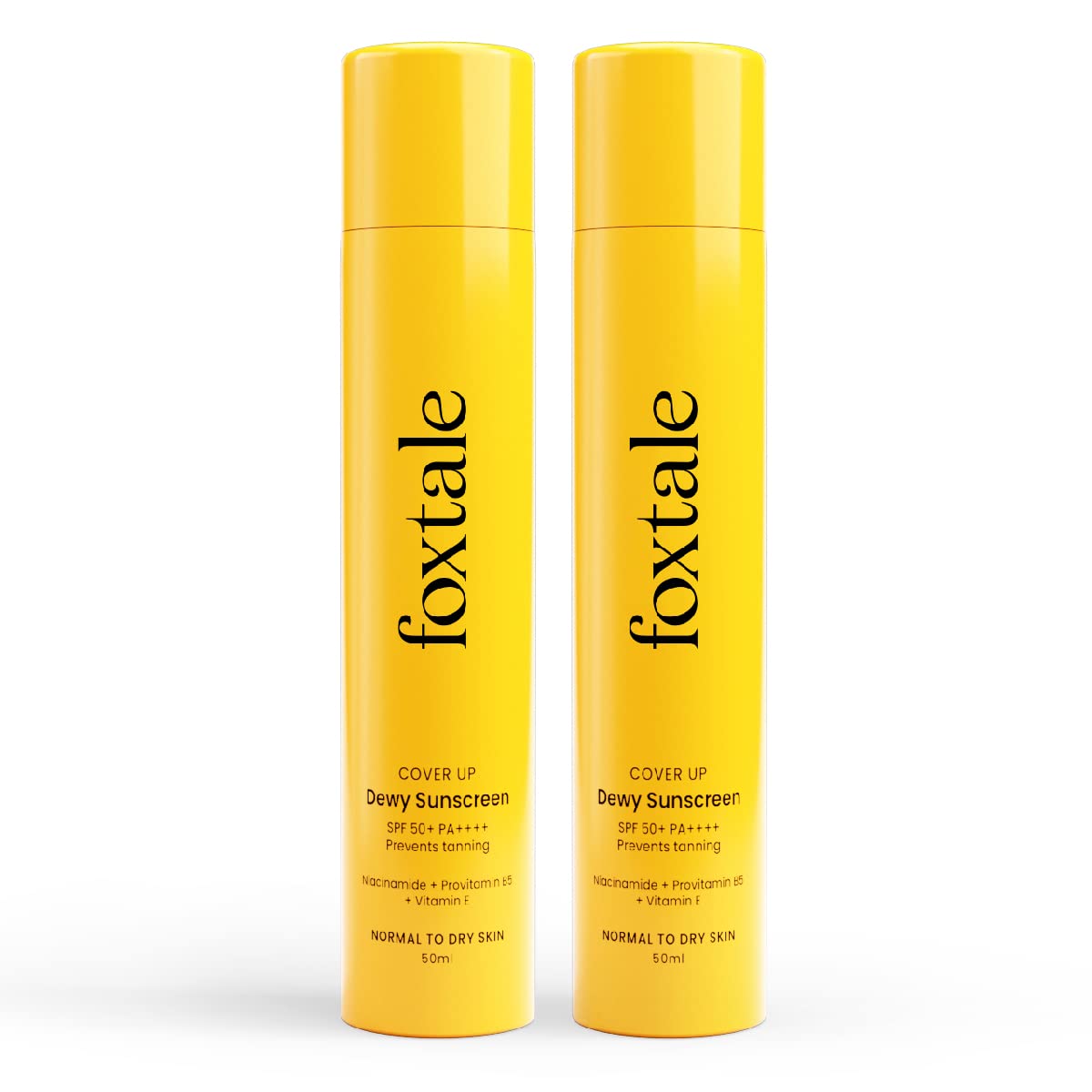 HomeBeautyFace CareSunscreenFoxtale (Pack of 2) Niacinamide Dewy Sunscreen SPF 70 PA++++ | No White Cast | Non Greasy | Prevents Tanning | Men & Women | For Normal to Dry Skin Type - 50 ml