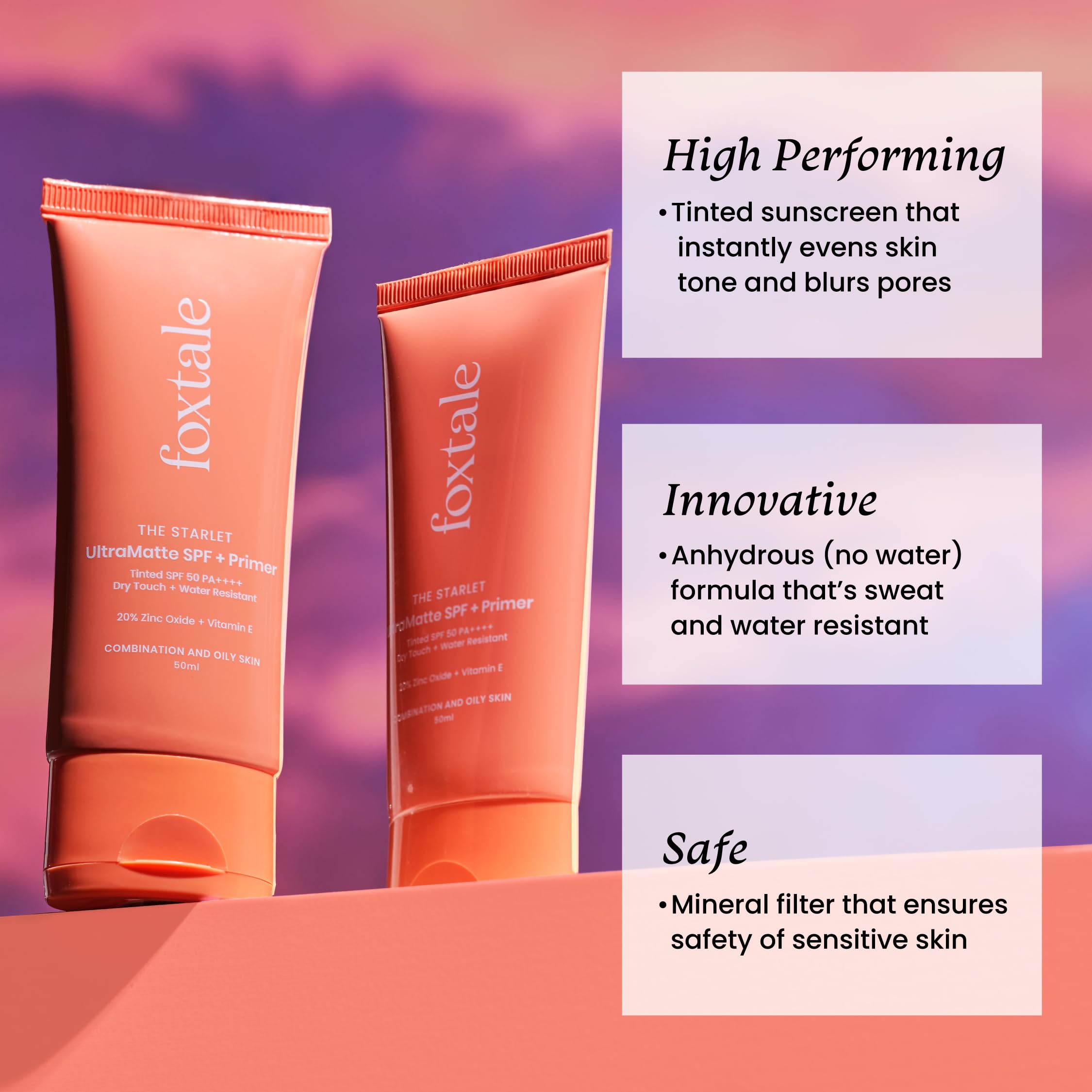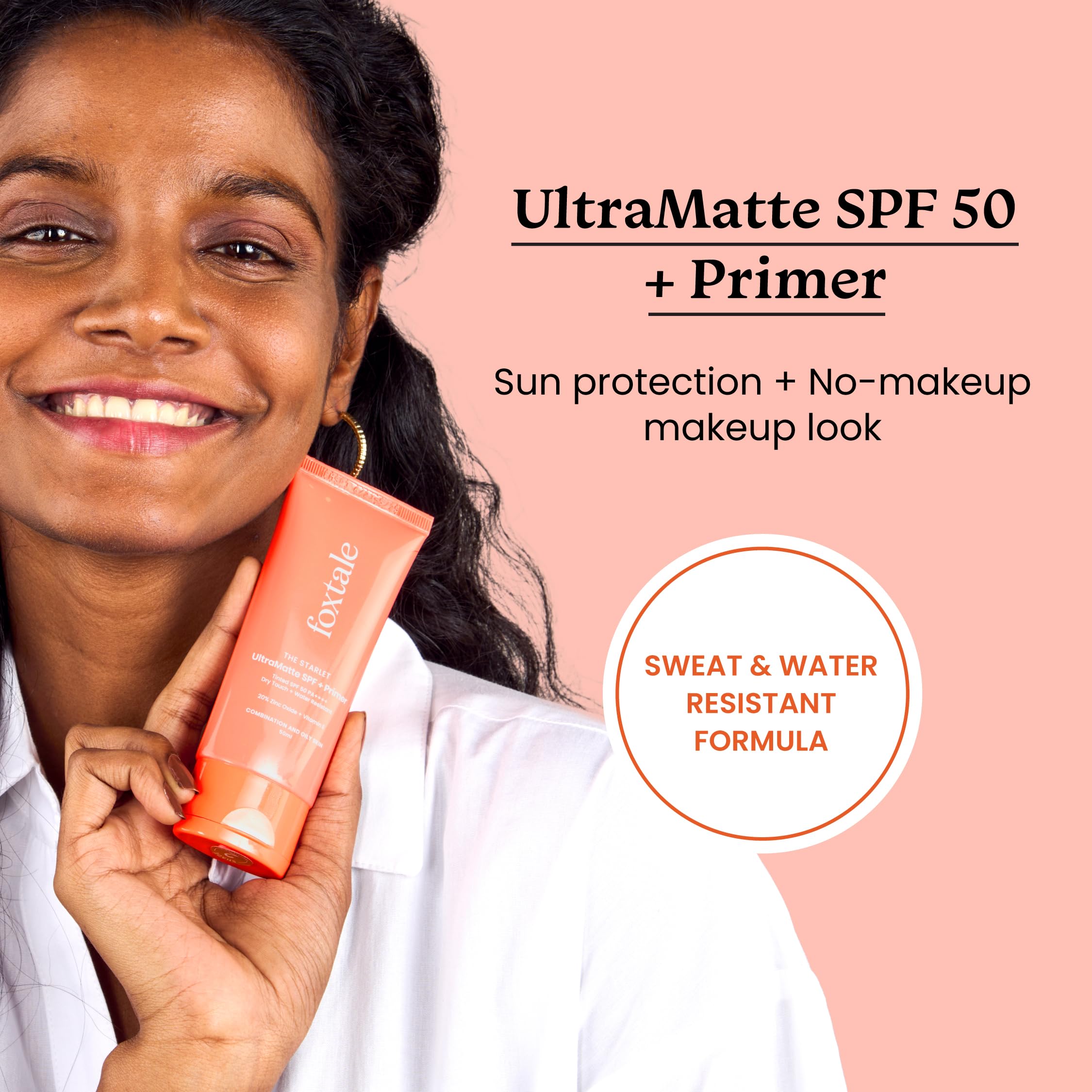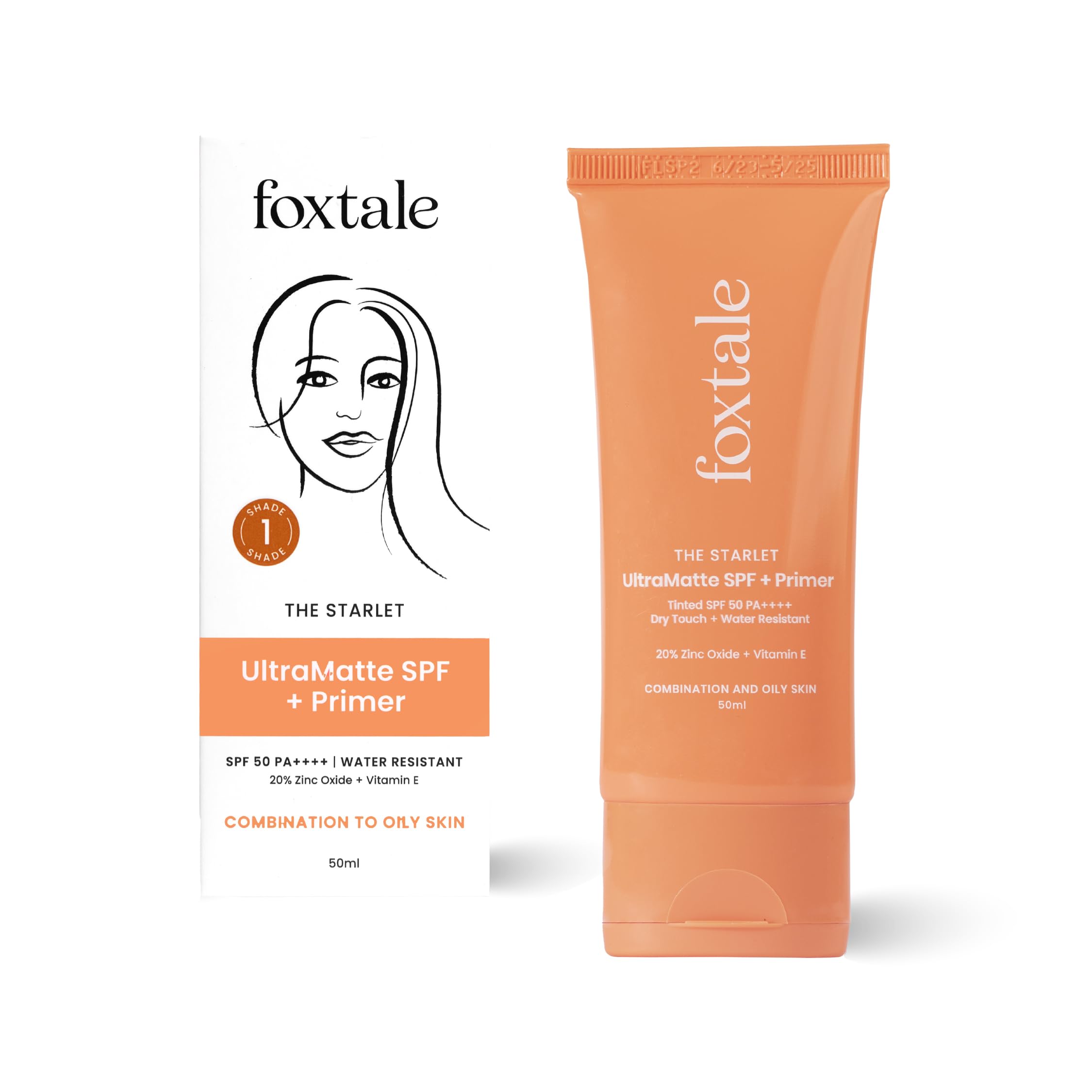 HomeBeautyFace CareSunscreenFoxtale Pack of 2 Ultra Matte SPF 50 PA++++ & Primer | Shade 1 | Tinted Mineral Sunscreen with 20% Zinc Oxide & Vitamin E | Water Resistant with Dry-Touch Finish No White Cast Blurs Out Pores - 50ml