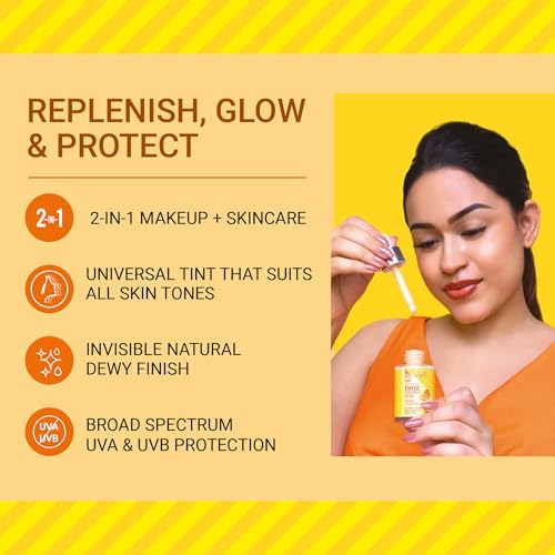 • Protects from UVA/UVB Rays: SPF 60 and PA++++ the Glow+ Infused Tinted Sunscreen Broad spectrum protects you from pollution blue rays UVA & UVB radiation Helps to fight dark spots premature aging and skin darkening that happen due to sun damage.