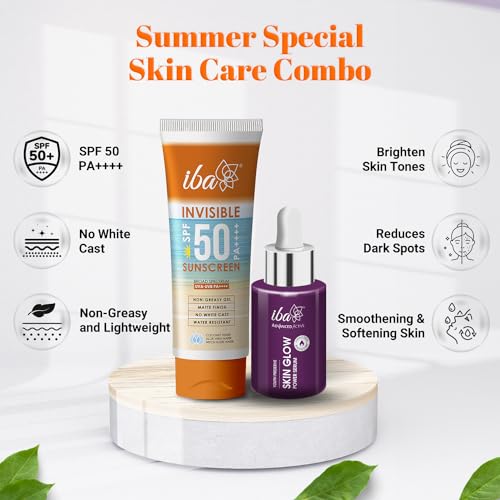 Iba Summer Special Skin Care Combo Vitamin C Serum 30ml + Matte Finish Sunscreen 100g | For Radiant Skin with Brighten Skin Tones and Sun SpotsIntroducing the Iba Summer Special Skin Care Combo a powerful duo that combines the benefits of Vitamin C Serum and Matte Finish Sunscreen to give you radiant and brightened skin. This combo includes a 30ml bottle of Vitamin C Serum and an 100g tube of Matte Finish Sunscreen providing comprehensive care for your skin during the summer months. Vitamin C Serum: The Vitamin C Serum is a potent formula enriched with Vitamin C known for its brightening and antioxidant properties. This serum helps to even out skin tone reduce the appearance of dark spots and hyperpigmentation and promote a radiant complexion. Its lightweight and fast-absorbing texture allows for easy application and effective penetration into the skin. Matte Finish Sunscreen: The Matte Finish Sunscreen is a must-have for sun protection during the summer. This sunscreen provides broad-spectrum UVA and UVB protection shielding your skin from harmful sun rays that can cause damage and premature aging. Its unique matte finish formula prevents excess shine and oiliness leaving your skin looking fresh and non-greasy even in hot and humid weather. Together the Vitamin C Serum and Matte Finish Sunscreen work in harmony to give you the ultimate summer skin care experience. The Vitamin C Serum brightens your complexion while the Matte Finish Sunscreen protects your skin from sun damage and helps maintain a shine-free look.