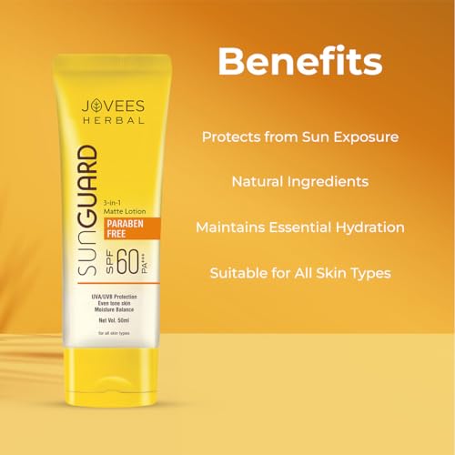 HomeBeautyFace CareSunscreenJovees Herbal Sun Guard Lotion SPF 60 Pa+++ Broad Spectrum For All Skin | 3 In 1 Matte Lotion UVA/UVB Protection, Moisture Balance, Even Tone Skin For Women/Men 50Ml