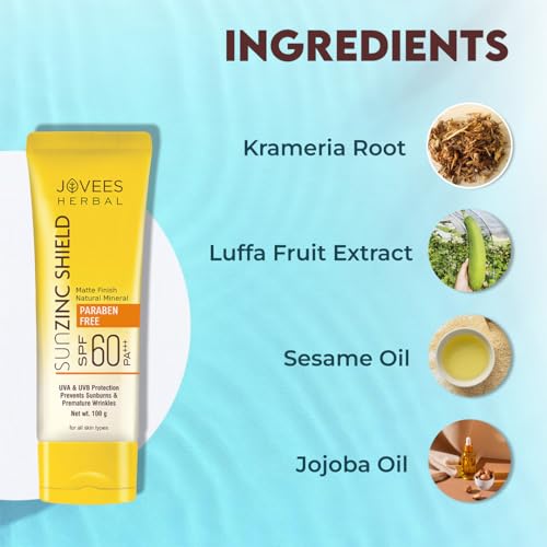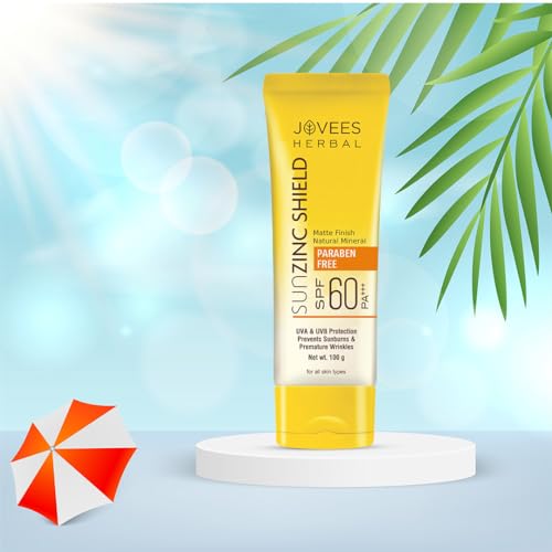Jovees Herbal Sun Zinc Shield SPF 60 Broad Spectrum PA+++ | Matte Finish | Oil Free | UVA/UVB Protection | For All Skin Types 100g