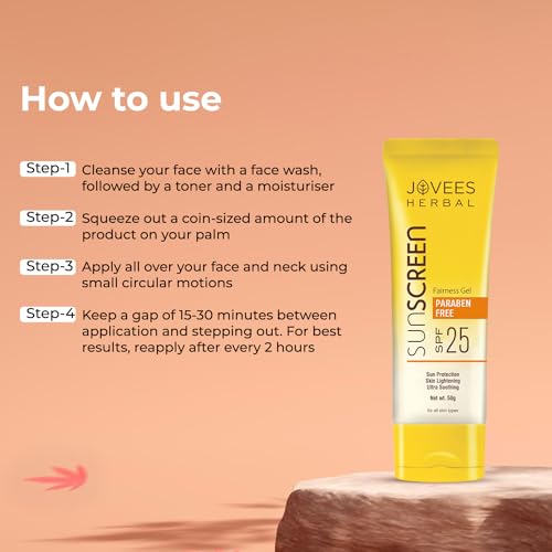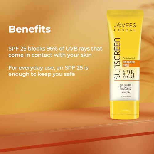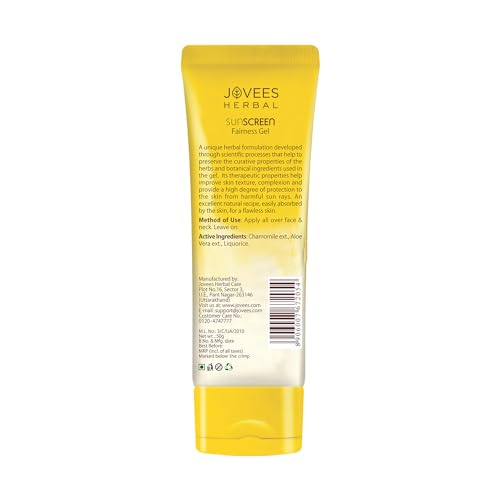Jovees Sunscreen Fairness SPF 25 Gel is a specially crafted sunscreen for those with oily and sensitive skin. Loose yourself in a seamless skincare experience with this lightweight non-greasy formula that effortlessly absorbs into your skin. It acts like a shield against the sun's harsh rays as this lotion boasts quick absorption providing you with effective protection without the burden of heavy residues. Enjoy your day under the sun without the worries of tanning or uneven skin tone as our specialized formula acts as a guardian against these common concerns. Jovees Sunscreen Fairness SPF 25 also keeps your skin protected indoors from the harmful blue light emitted from your screens and phones. Embrace the confidence that comes with radiant protected skin tailored for your specific needs. Say goodbye to the sticky discomfort of traditional sunscreens and welcome a refreshing alternative that caters to your unique skin type.