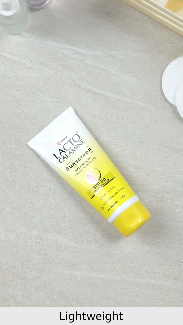 Lacto Calamine Sunscreen SPF 50 | 100g | PA +++ Sunscreen For Oily Skin | UVA â UVB Sunscreen | Water Resistant & No White Cast | With Kaolin Clay Vitamin E & Lemon Extracts | Paraben Free (100 g)