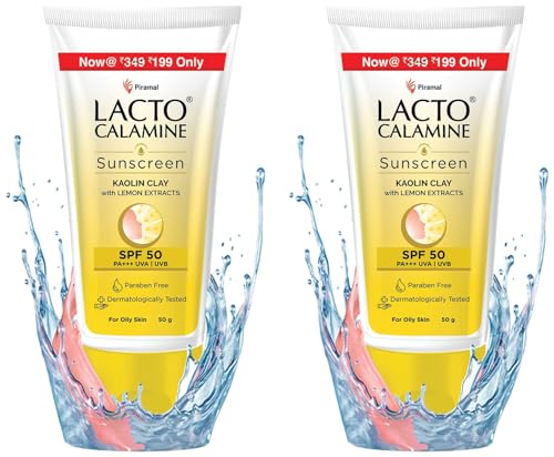 Lacto Calamine Sunshield Matte Look Sunscreen SPF50 PA+++ for Oily or Acne prone skin, Very Water Resistant, Paraben & Sulphate free, 50g (Pack of 2)
