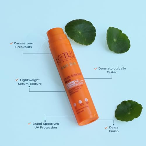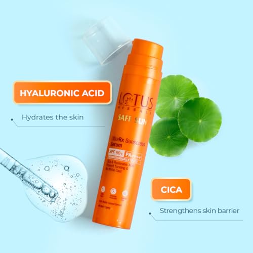 Lotus Herbals UltraRx Sunscreen Serum SPF 60+ PA++++ is the newest invention in the SafeSun range. It comes with a water-based serum crafted with nourishing ingredients of Cica and Hyaluronic Acid known for skin barrier-strengthening properties. This SPF 60+ protects from UV rays that cause sunburns while the PA++++ provides the highest protection against UVA rays that cause premature ageing. This serum sunscreen is lightweight non-sticky and doesn't clog pores. It is dermatologically tested and proven to not cause any irritation or breakouts. Suitable for all skin types this sunscreen serum gives you sun protection with a dewy finish