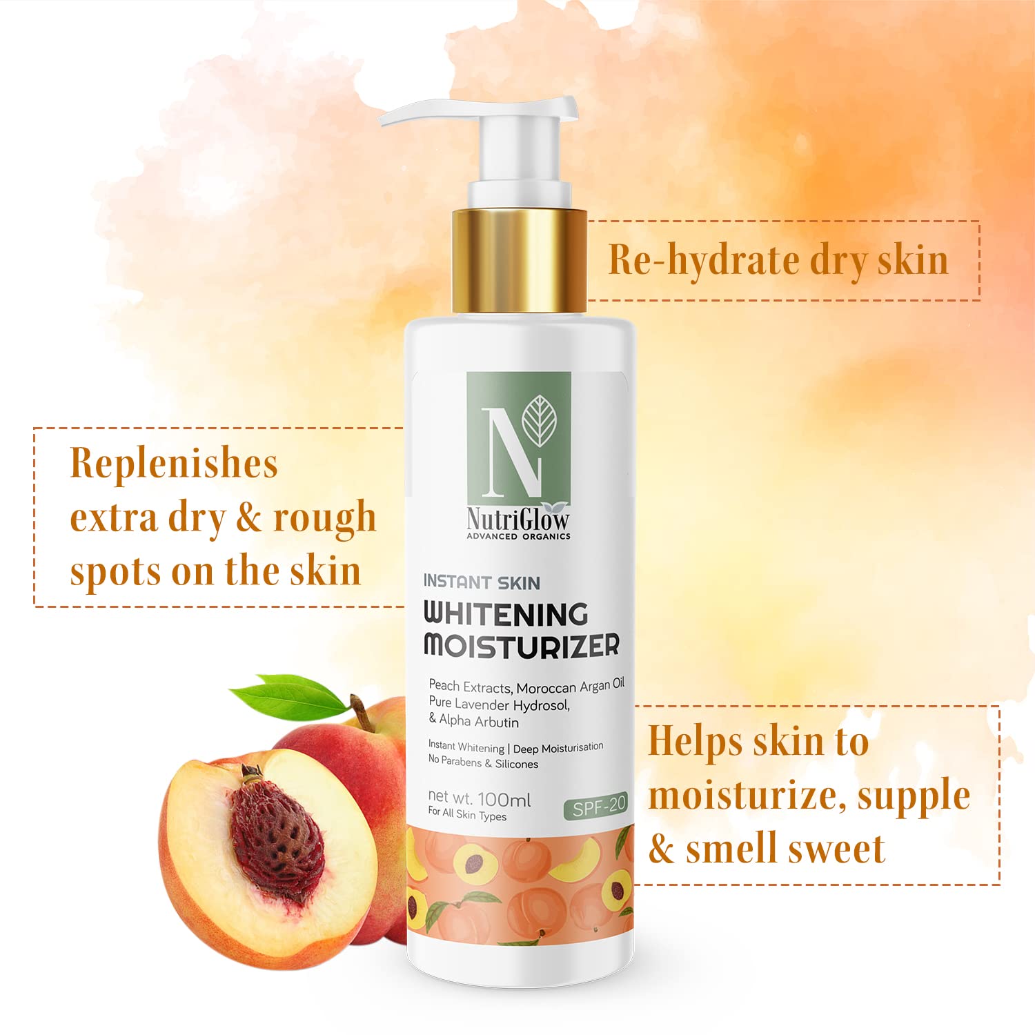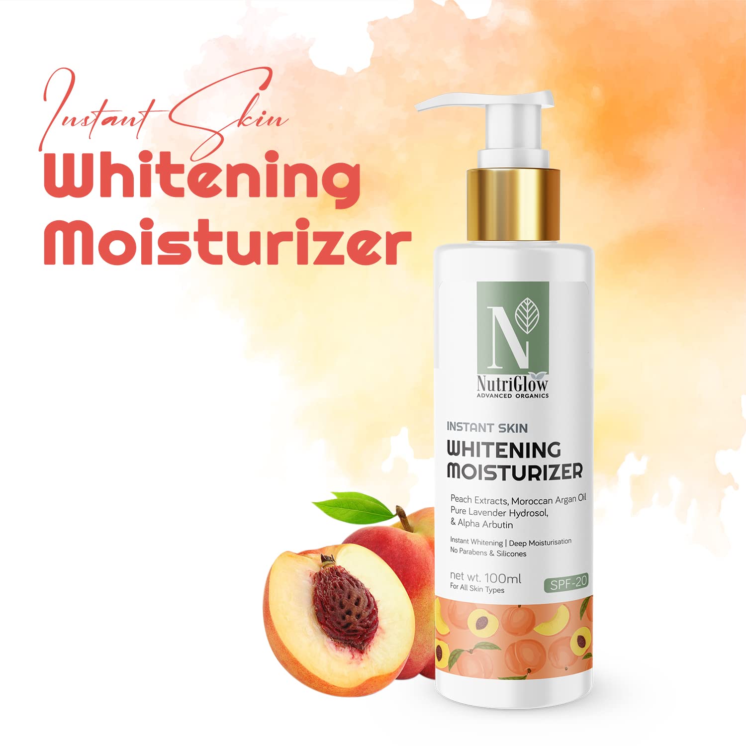 NutriGlow Advanced Organics Instant Skin Whitening Moisturizer & Anti Pollution Sunscreen SPF 30 PA+++ Non Greasy Lightweight For Dry Sensitive Tan Free Skin Refreshing Fragrance All Day 100ml Each Pack of 2