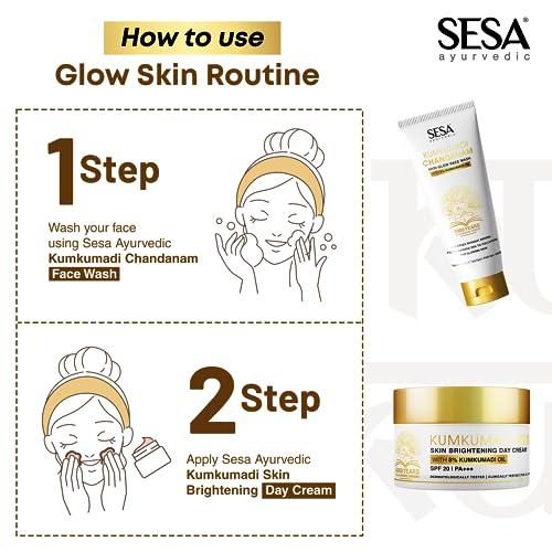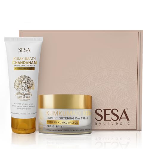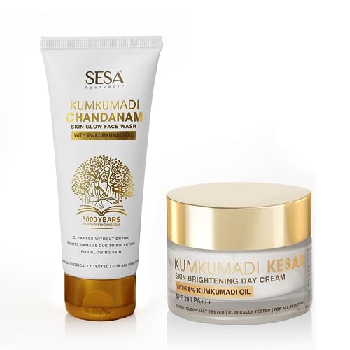 • 100% PURE AND AYURVEDIC: Sesa Kumkumadi Day Cream & Face Wash is made with 8% Kumkumadi Thailam and is prepared using an ancient Ayurvedic recipe as given in Ashtanga Hriduya (Ashtang Hridayam). Thse products are dermatologically tested and suitable for a