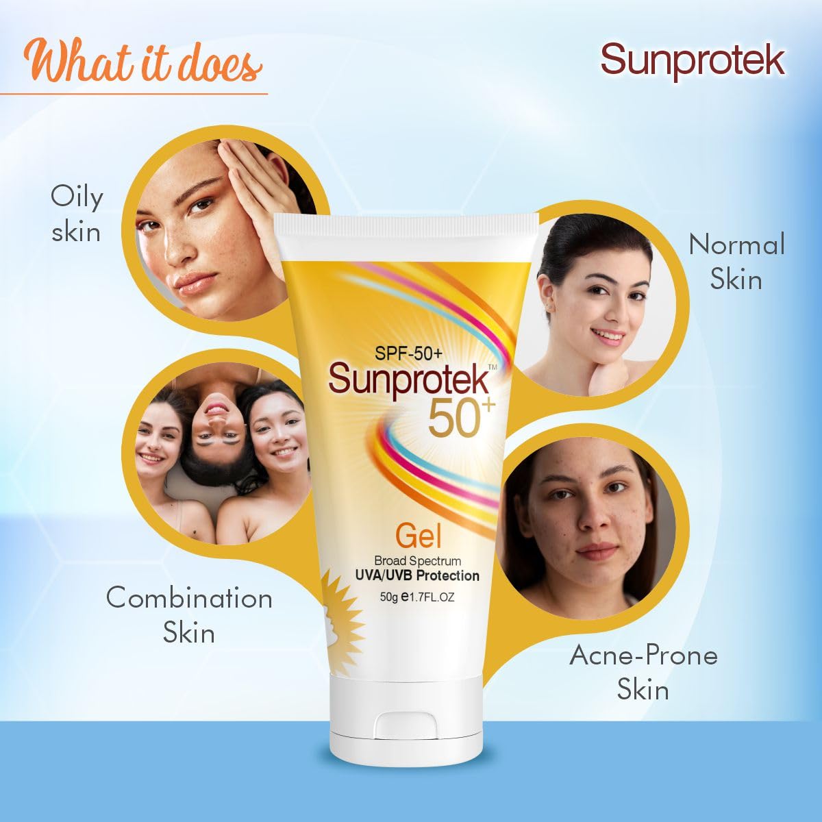 Sunprotek Sunscreen Gel 50+ Spf UVA/UVB Extended Broad Spectrum Protection 1.76 oz |Ideal for acne prone skin | Water based gel |Unique WOW encapsulation technology