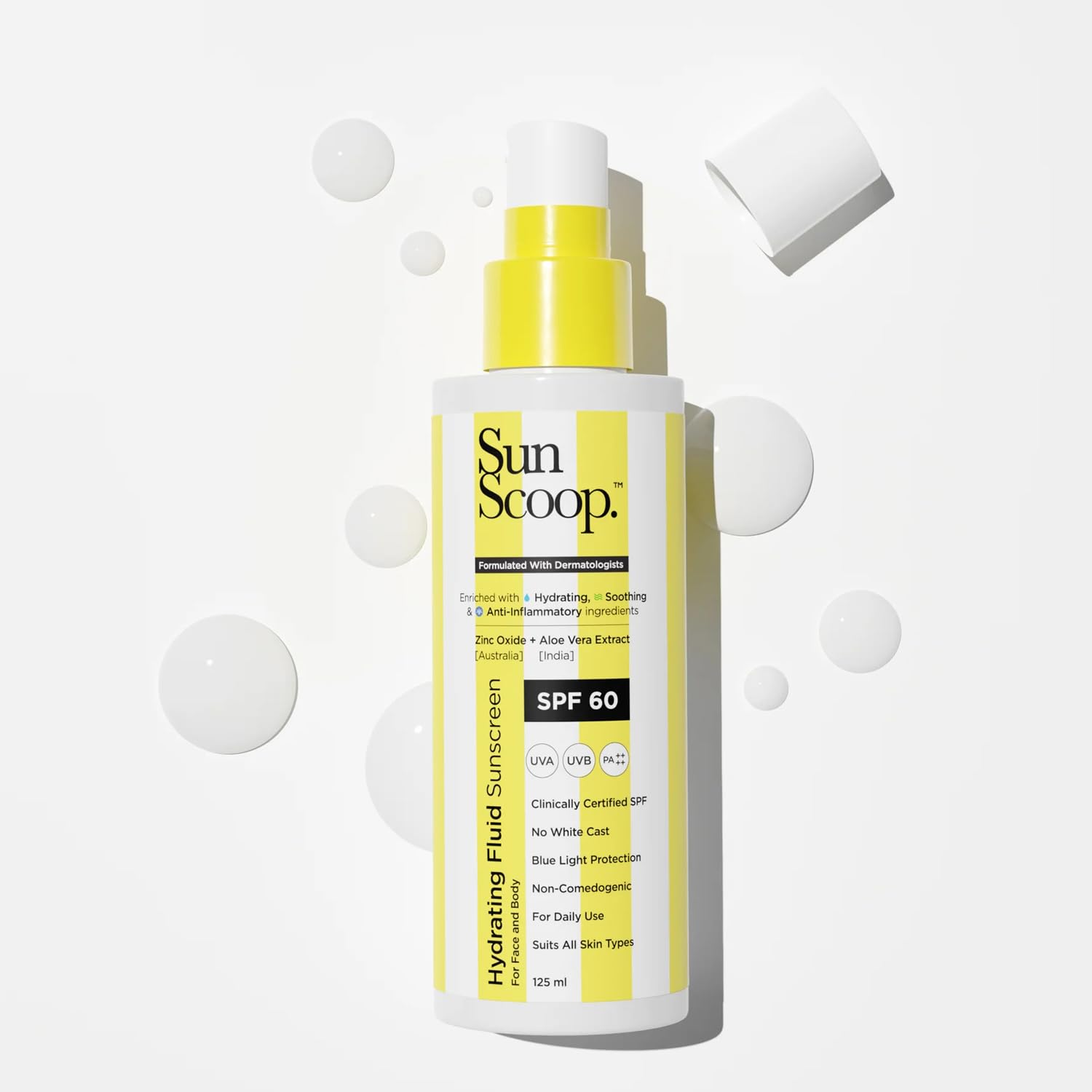 HomeBeautyFace CareSunscreenSunScoop Fluid Body Sunscreen | SPF 60 | For All Skin Types | Cooling Hydrating & Quick-Absorbing Liquid Sunscreen | No White Cast | Ultimate Sun Protection | 125 ml