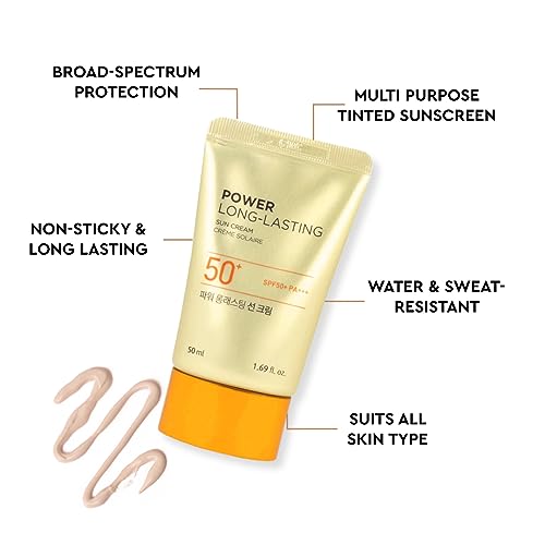 Power Long-Lasting Suncream SPF50+ Pa+++ is a water-resistant high-performance sunscreen that protects your skin from harmful UVA and UVB rays. It has a matte finish and a natural beige shade making it perfect for everyday use. The sunscreen is also enriched with botanical extracts including Rhubarb Plant Argan Tree Seed and Blue Sea Kale Extracts which help to keep your skin glowing. Acai berry an antioxidant found in nature helps to reduce the effects of ultraviolet rays.