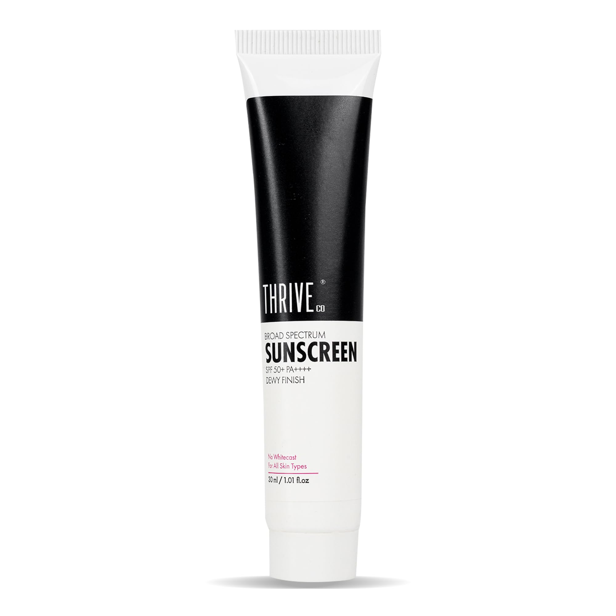 ThriveCo Water-based Sunscreen | Broad Spectrum & Spf 50 Pa++++ | UV A & UV B Protection | With Dewy Finish | Sweat-resistant, Non-sticky & Highly Absorbant | For All Skin Types, Men & Women | 30ml