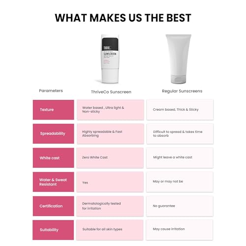 ZERO WHITE CAST: Enjoy a natural look with ThriveCo Sunscreen which leaves no white cast on the skin. Its advanced formulation blends seamlessly into your skin tone ensuring you look radiant and protected without the typical chalky appearance associated w