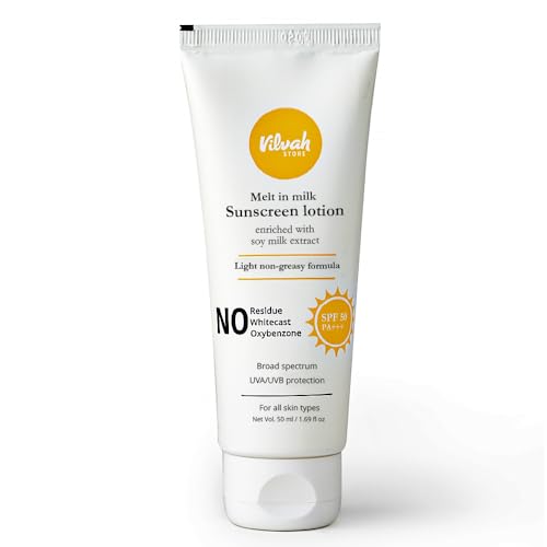 HomeBeautyFace CareSunscreenvilvah STORE Vilvah Melt-In-Milk Sunscreen For All Skins Spf 50 Pa+++ With Soy Milk Extract Lightweight, No White Cast Protects Skin From Dangerous Uva, Uvb & Blue Light For Men & Women, 60Ml