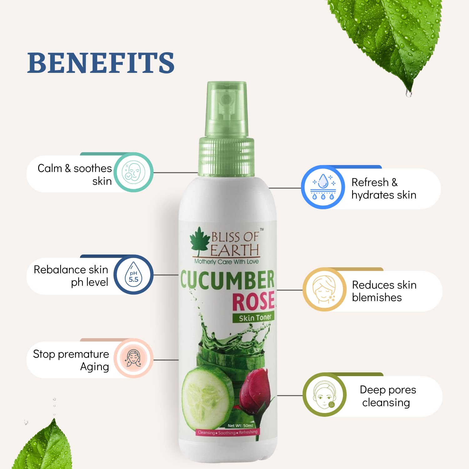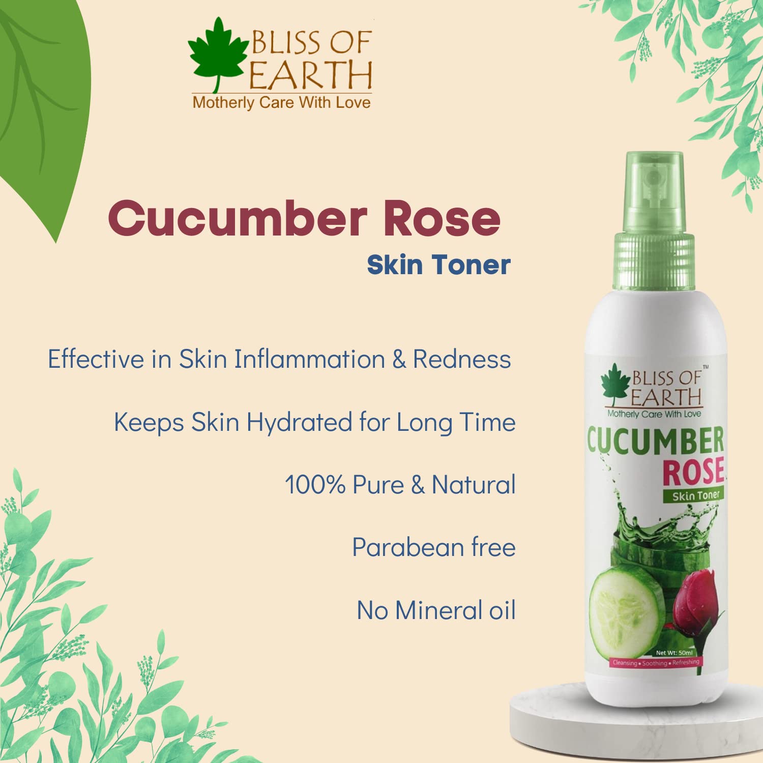 Bliss of Earth Cucumber Rose Skin Mist Toner | Facial Mist | 100ML | Refreshing & Clarifying | Pore Minimizing & Soothing
