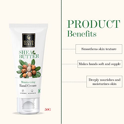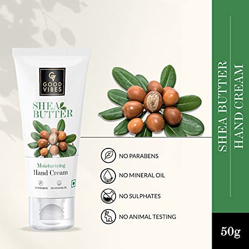 Good Vibes Shea Butter Moisturizing Hand Cream 50 g Deep Moisturization Skin Softening Lightweight Non Greasy Quick Absorbing Formula For All Skin Types No Parabens & Sulphates