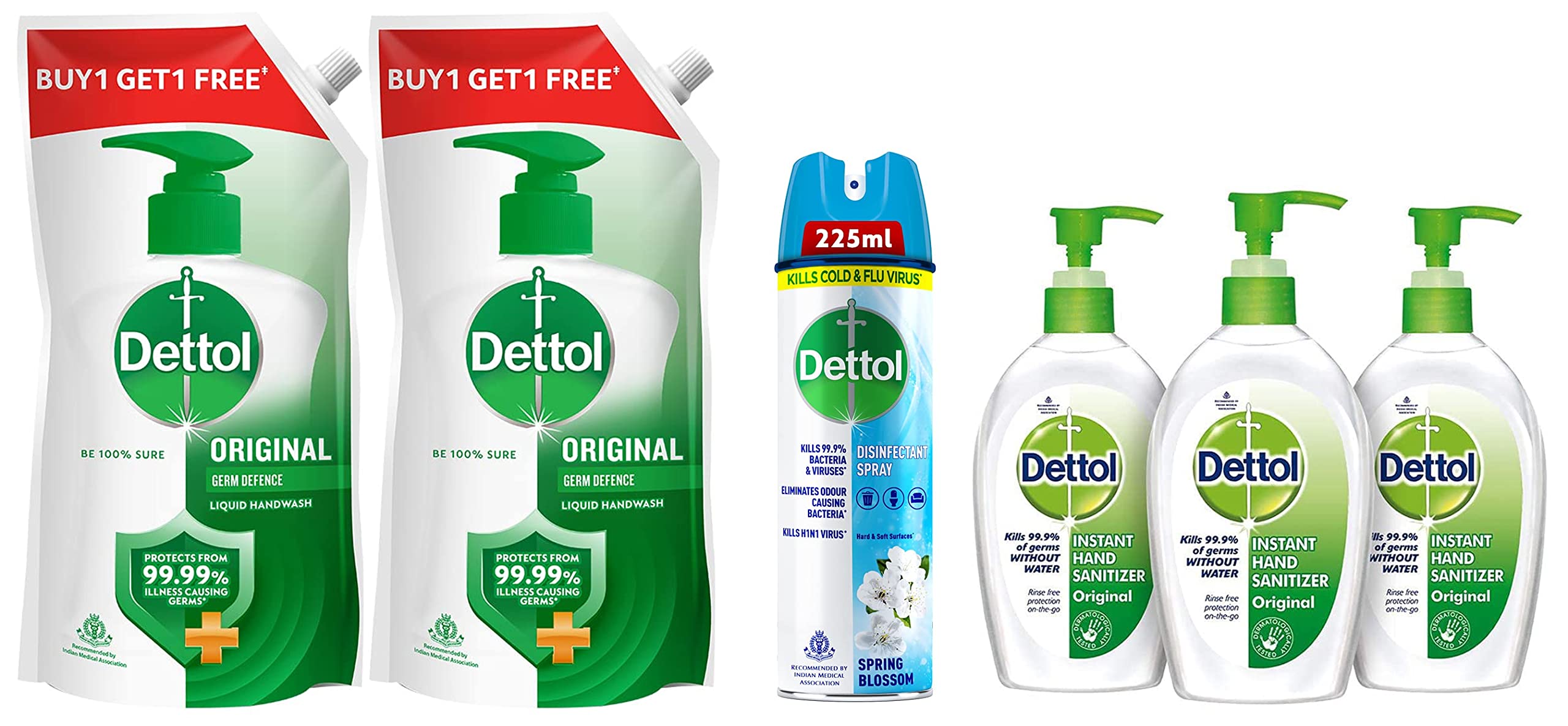 Dettol Disinfectant Sanitizer Spray Bottle | & Original Germ Protection Alcohol based Hand Sanitizer Pump 200ml & Liquid Handwash Refill - Original Germ Protection Hand Wash | Antibacterial Formula