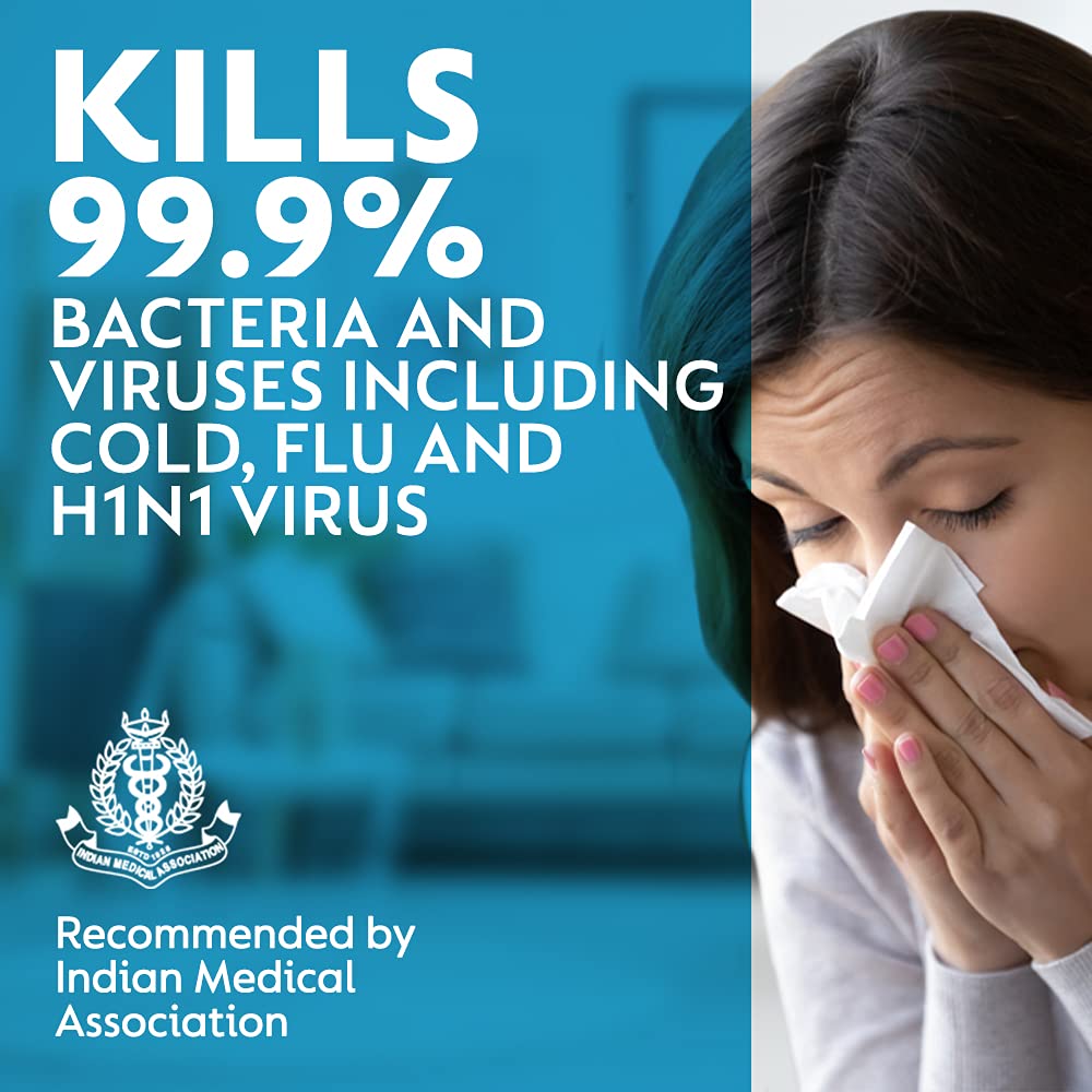 Germ Protection: Kills 99.9% bacteria and viruses including cold flu and H1N1 virus. Recommended by Indian Medical Association (IMA)