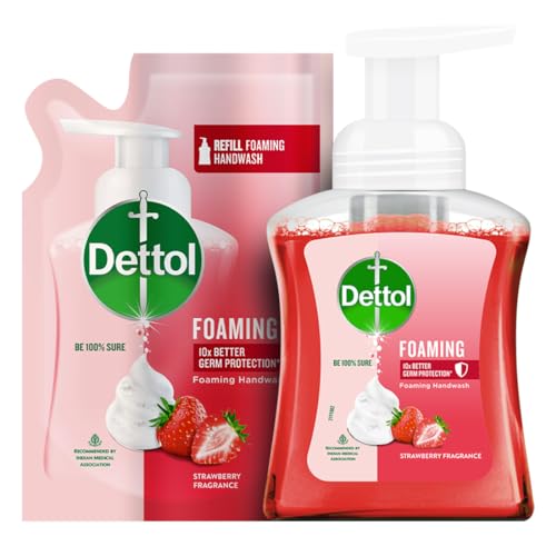 Dettol Foaming Handwash Pump + Refill Combo, Strawberry (250ml + 200ml) Rich Foam Moisturizing Hand Wash Soft on Hands