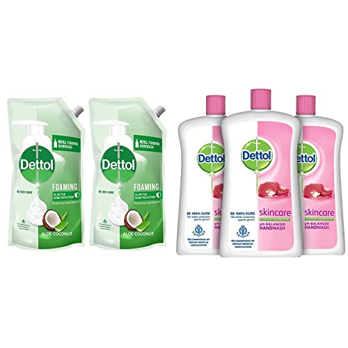 Dettol Foaming Handwash Refill - Aloe Coconut, 700ml (Pack of 2) & Dettol Liquid Handwash Refill Bottle (Pack of 3-900ml each)
