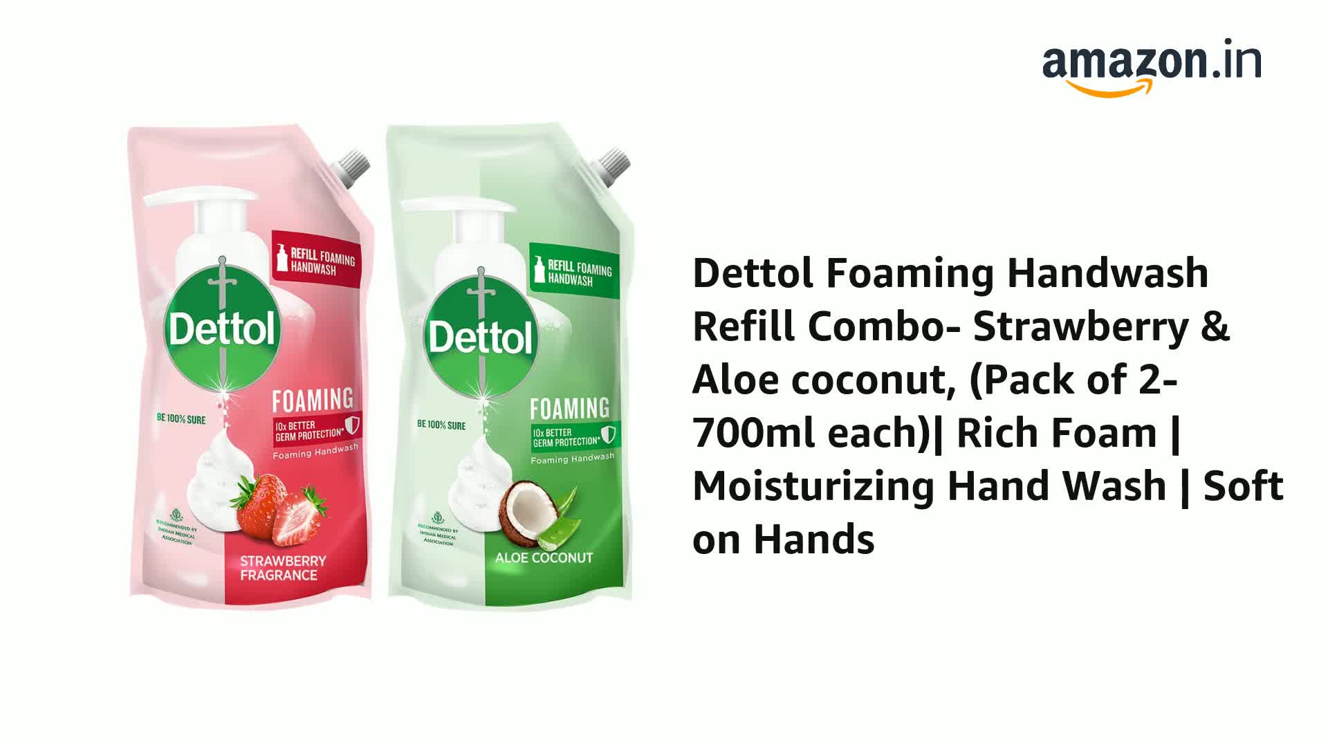Dettol Foaming Handwash Refill Combo- Strawberry & Aloe coconut, (Pack of 2-700ml each)| Rich Foam | Moisturizing Hand Wash | Soft on Hands