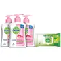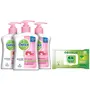 Dettol Liquid Handwash Dispenser Bottle Pump -Â Skincare Moisturizing Hand Wash (Pack of 3 - 200 ml each) | Antibacterial Formula | 10x Better Germ ProtectionBe 100% sure to protect your skin from 100 illness-causing germs and bacteria. Use Dettol's Skincare Germ Protection Handwash Liquid Soap pH balanced formula every day and keep your hands hygienically clean and refreshed. This hand wash provides soft and rich lather leaving behind clean hands and fragrance. The trusted germ-protection modus operandi acts like a barrier between your hands and a wide range of unseen germs. The soap-free formula with glycerin makes sure to keep your skin moisturised while the plant derived cleansers help ensure thorough cleaning. Dettol handwash also contains more than 85% naturally derived ingredients with no TCC & Triclosan giving another healthy reason for hand washing whenever in need. Wash hands properly with Dettol and help keep your family healthy! Safety Information: Keep out of reach of children unless under adult supervision. Avoid direct contact with eyes. For external use. In case of contact with eyes rinse immediately with plenty of water. If persistent irritation occurs seek medical attention.Dettol Disinfectant Sanitizer Wet Wipes for Skin & Surfaces Original â 80 Count| Moisture-Lock Lid | Safe on Skin | Ideal to Clean SurfacesDettol's Disinfecting Skin & Surface Wipes are Safe on Skin Ideal to Clean Multiple Surfaces Easy to carry with a resealable Moisture-lock lid. Dettol disinfecting wipes are practical for everyday use on furniture taps sinks door knobs kitchen bathroom surfaces floor cleaning childrenâs surfaces and places that are germ hotspots. It can be used on most hard non-porous surfaces including Finished Wood Sealed Marble Stainless Steel Laminated Floors Glass and Plastic.