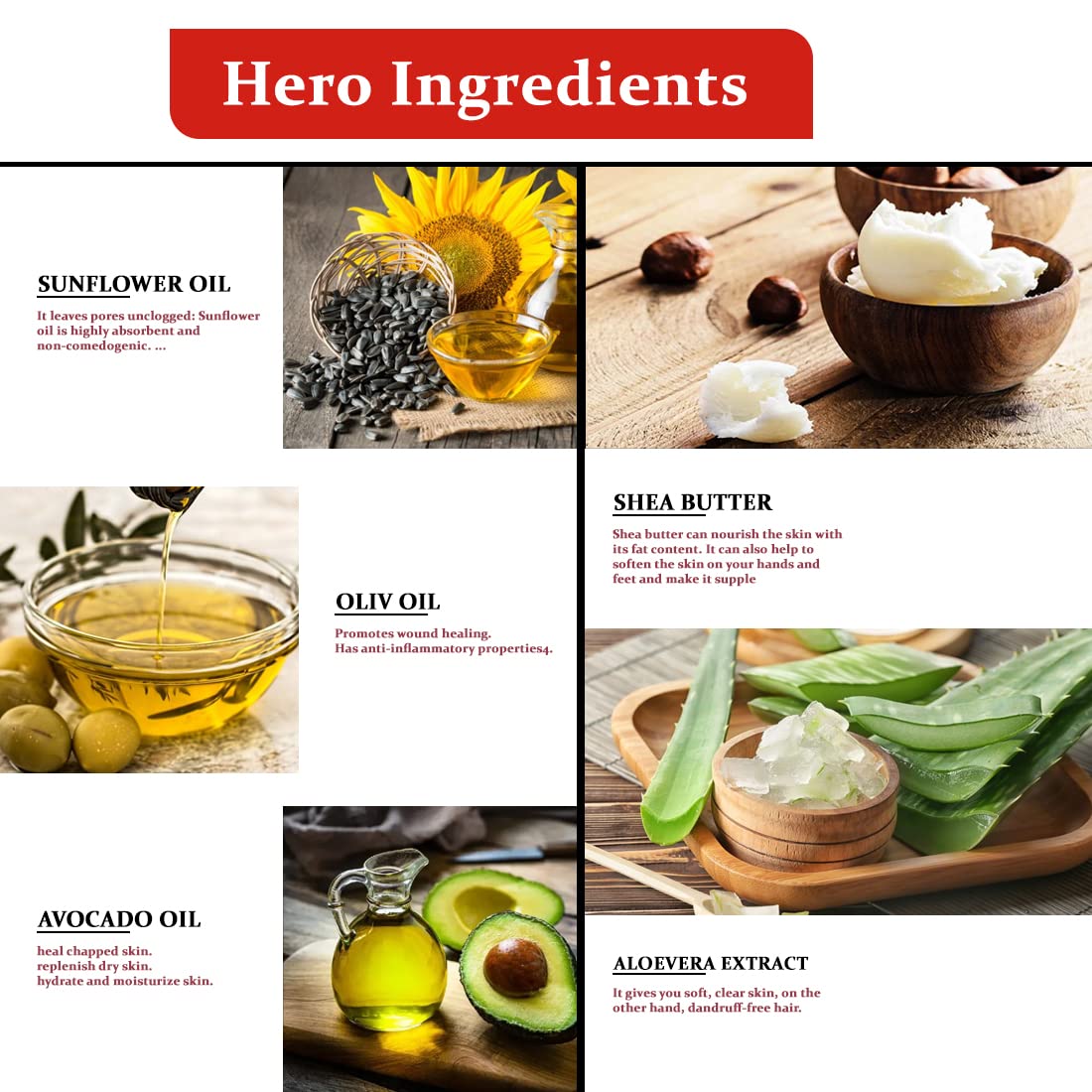 Sunflower Oil has excellent nourishing properties that helps to hydrate and moisturize dry hands and feet. Also this oil creates a protective shield on your skin to helps against sun damage.