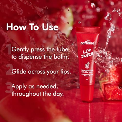 mCaffeine Lip Juice Tinted Lip Balm - Watermelon POP | 24 hrs Moisturization | With Peptides, Cocoa Butter & Vitamin E | Heals Dry & Chapped Lips | Lip Balm For Women | Sheer Red Tint - 10g