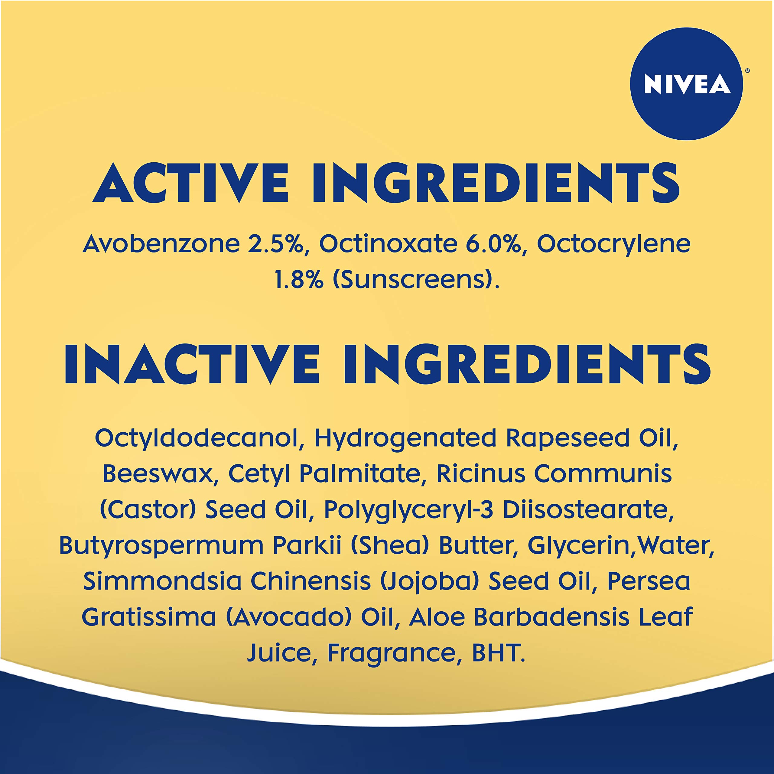 For more than 100 years NIVEA has helped people feel good in their own skin. And NIVEA knows that just like your body lips need nourishment too. That is why you can trust NIVEA to provide your lips with the ultimate care they deserve. The NIVEA Smoothness Lip Care formula is Mineral Oil free and has broad spectrum SPF 15 sunscreen to help prevent lips from sunburn. This product is also enriched with a variety of nourishing oils including Shea Butter Jojoba Oil and Avocado Oil to keep lips beautiful and provide all-day nourishing moisture. This leave lips feeling super soft and looking smooth. For sunscreen use apply NIVEA Smoothness Lip Care liberally 15 minutes before sun exposure and reapply at least every 2 hours. NIVEA Smoothness Lip Care provides lips with the nourishing care and sunscreen protection they deserve.