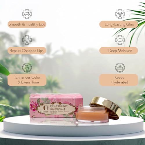 Ohria Ayurveda Rose & Pomegranate Jaggery Lip Balm | Deeply Hydrates, Softens & Reduces Lip Pigmentation| For Dark, Dry & Chapped Lips | All Skin Types - 6gm