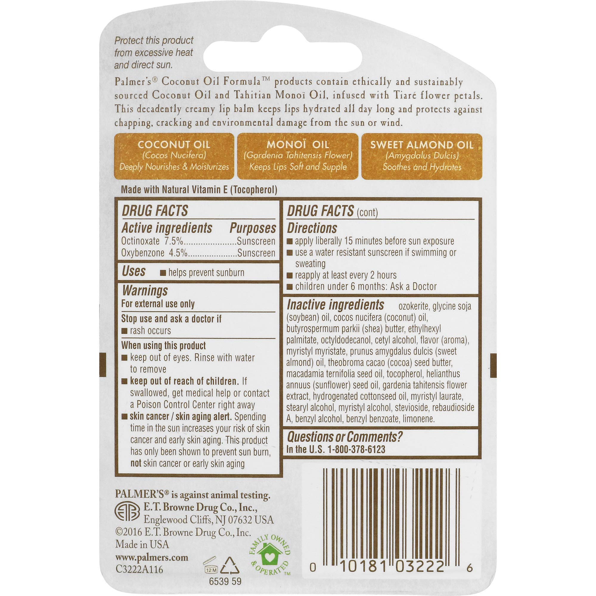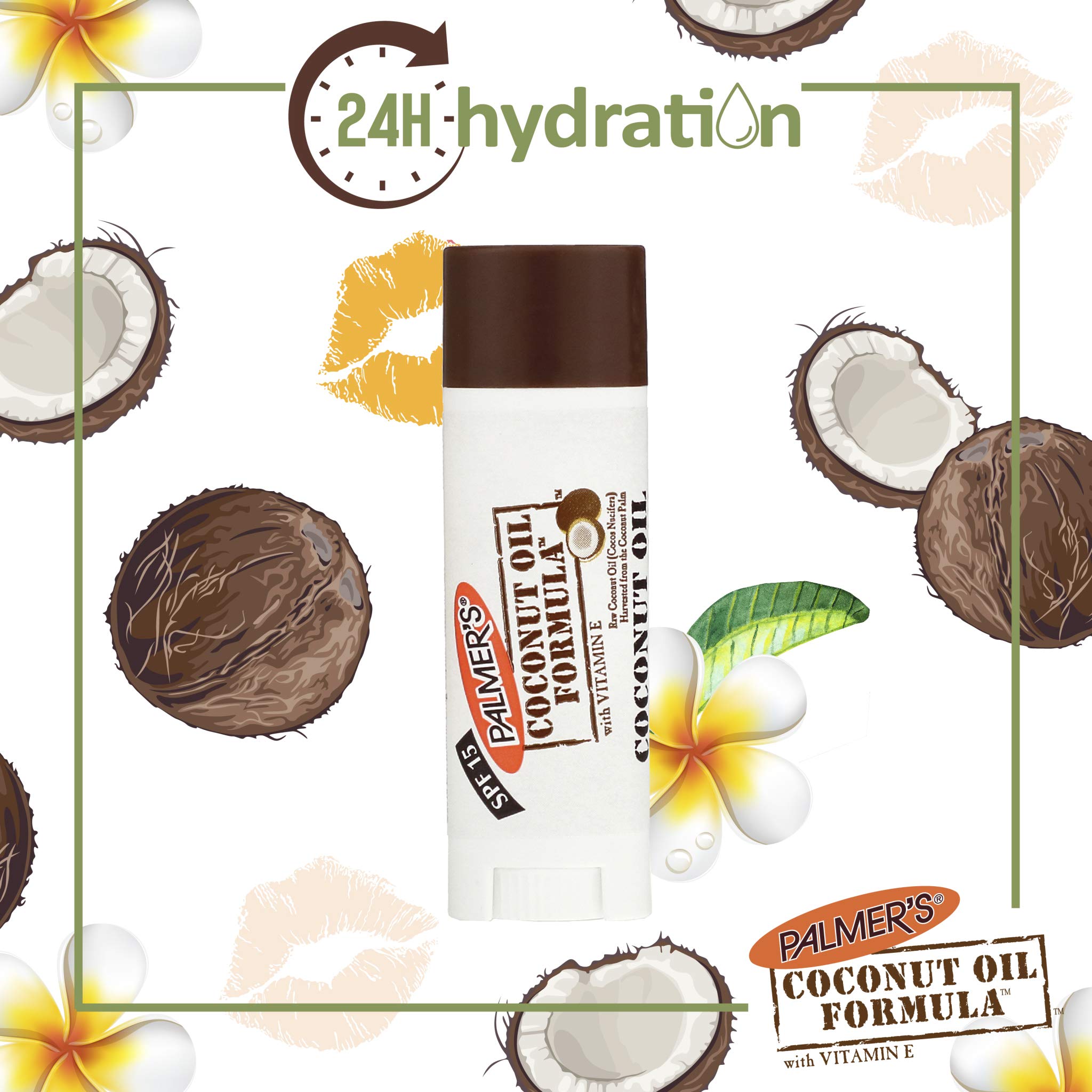 With pure coconut and tahiti monoi oil this ultra-hydrating balm drenches lips in luxurious moisture providing unsurpassed radiance and softness. Palmer's pure coconut oil plus vitamin e with SPF protection moisturises dry chapped lips for 24 hours.
