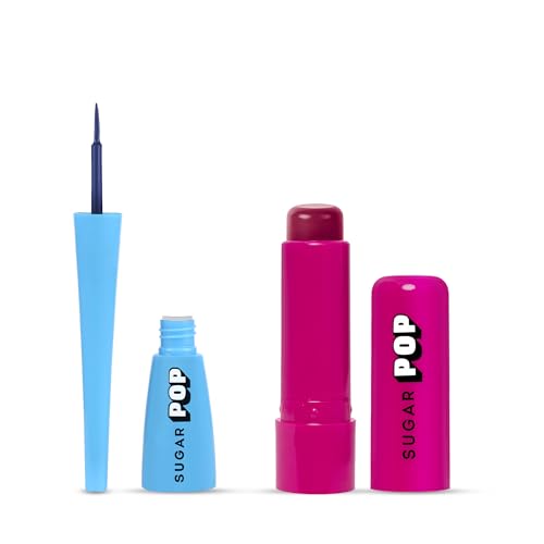 SUGAR POP Makeup Essentials - Matte Eyeliner 02 Blue - 4.5 ml & Nourishing Lip Balm 07 Plum - 4.5 gms x 2 - Set of 2