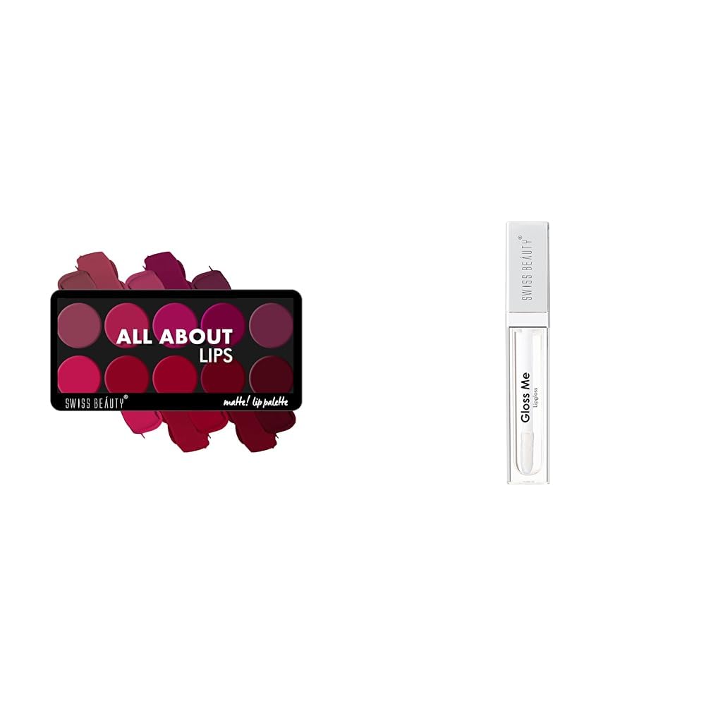 Swiss Beauty All About Lip Palette With 10 Pigmented Colors |Creamy Matte Finish Lip Colors Lipstick |Travel Friendly Lip Palette | Multicolor-02 12 Gm |The product comes in safe package. The product will be an excellent pick for you.Swiss Beauty Metallic Gloss Me Lip Gloss | LightweightNon Sticky and Hydrating Lip Gloss| White 6MlIf you want to know how these glosses feel on the lips the clue is in the name. But while its softer than butter its not sticky or gloopy in the bargain. The lightweight formula allows you to wear it alone or on top of a matte lipstick to make it feel less drying. Plus the colossal shade range will make any beauty addict feel like a kid in a cosmetic candy shop.