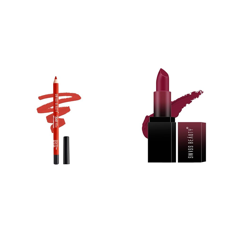 Swiss Beauty Bold Matt Lip Liner | Long-lasting |Matte Finish | Non-drying | Shade-08 5gmSwiss Beauty provides nine intensely pigmented pressed glitter palettes.Enclosed in sparkly silver and golden packaging. Nine glitter eye shadow Shades that can be used alone to create the perfect holiday look. - highly pigmented shimmery eyeshadow - easy to blend and super long lasting - lightweight fine particle pressed glitter.Swiss Beauty Hd Matte Pigmented Smudge Proof Lipstick | Creamy Matte Long Stay Lipstick | Bold Wine 3.5G|.