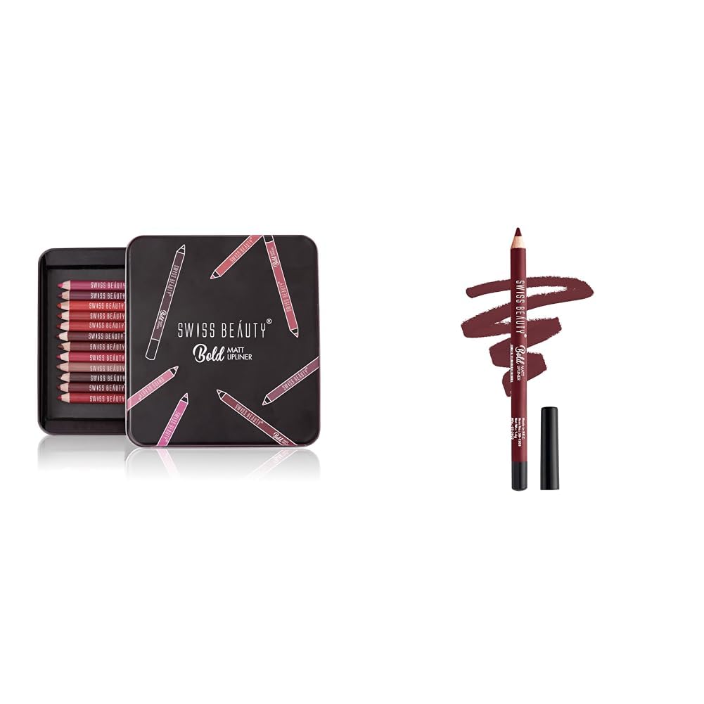 SWISS BEAUTY Bold Matt Lip Liner | Set of 12 | Long-lasting |Matte Finish | Non-drying, 15gm & Bold Matt Lip Liner | Set of 12 | Long-lasting |Matte Finish | Non-drying, 15gm